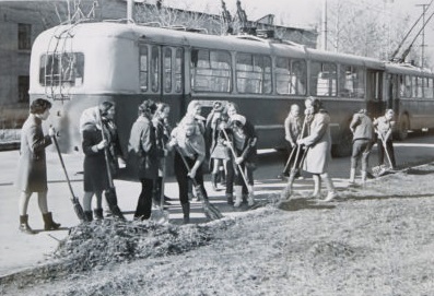 В августе 1956 года на работу в УКТ на должность инженера-электрика приняли молодого выпускника Московского автодорожного института Виталия Короткого. Более 20 лет он проработал главным инженером, а с 1958 года организовал на родном предприятии курсы водителей троллейбусов. А еще он известен калужанам благодаря своему хобби – фотографии. Его кадры Калуги советской очень популярны и узнаваемы. На этом фото В. Короткого сотрудницы УКТ на субботнике.
