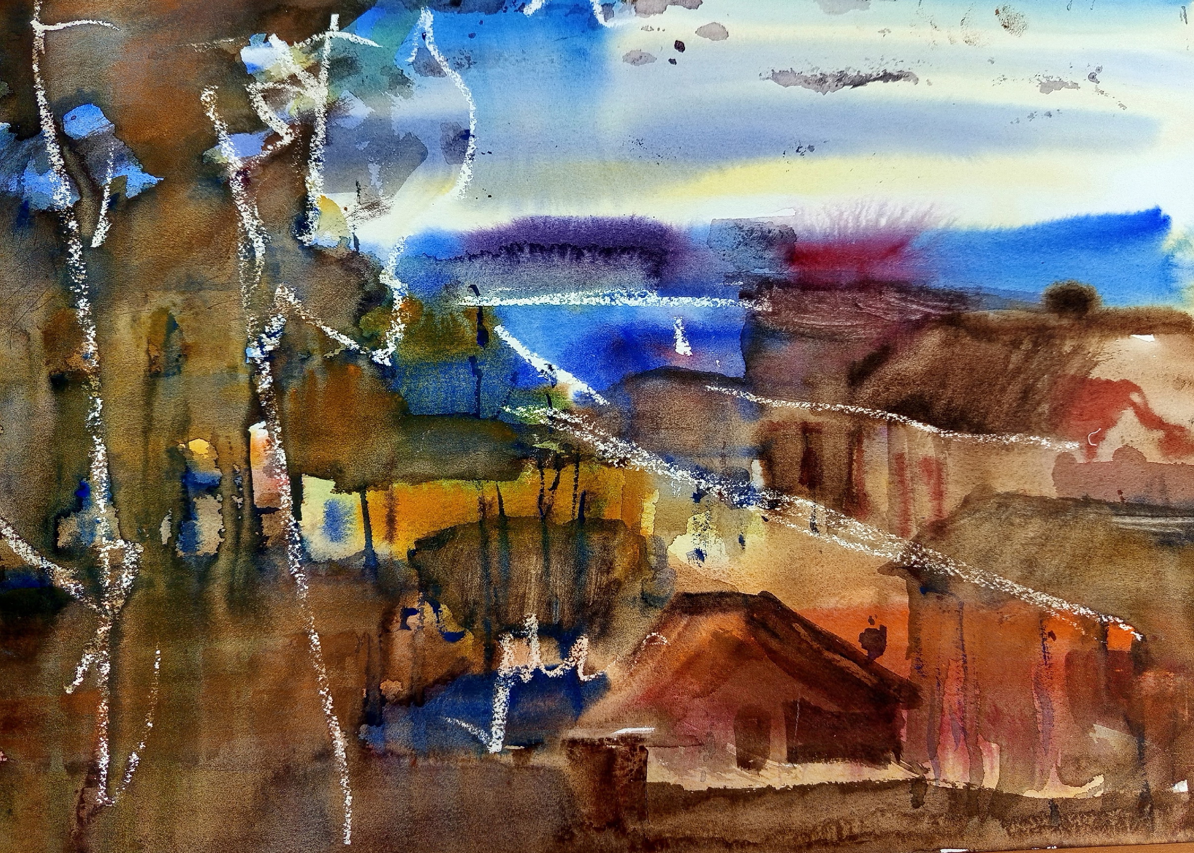 На мой взгляд, его акварели совсем не похожи на работы архитектора. Люди этой профессии, на стыке искусства и точных наук, чаще строят формы линиями, любят монохром, лаконичность, простоту, в отличие от художников, которые больше внимания уделяют цвету и пространству.