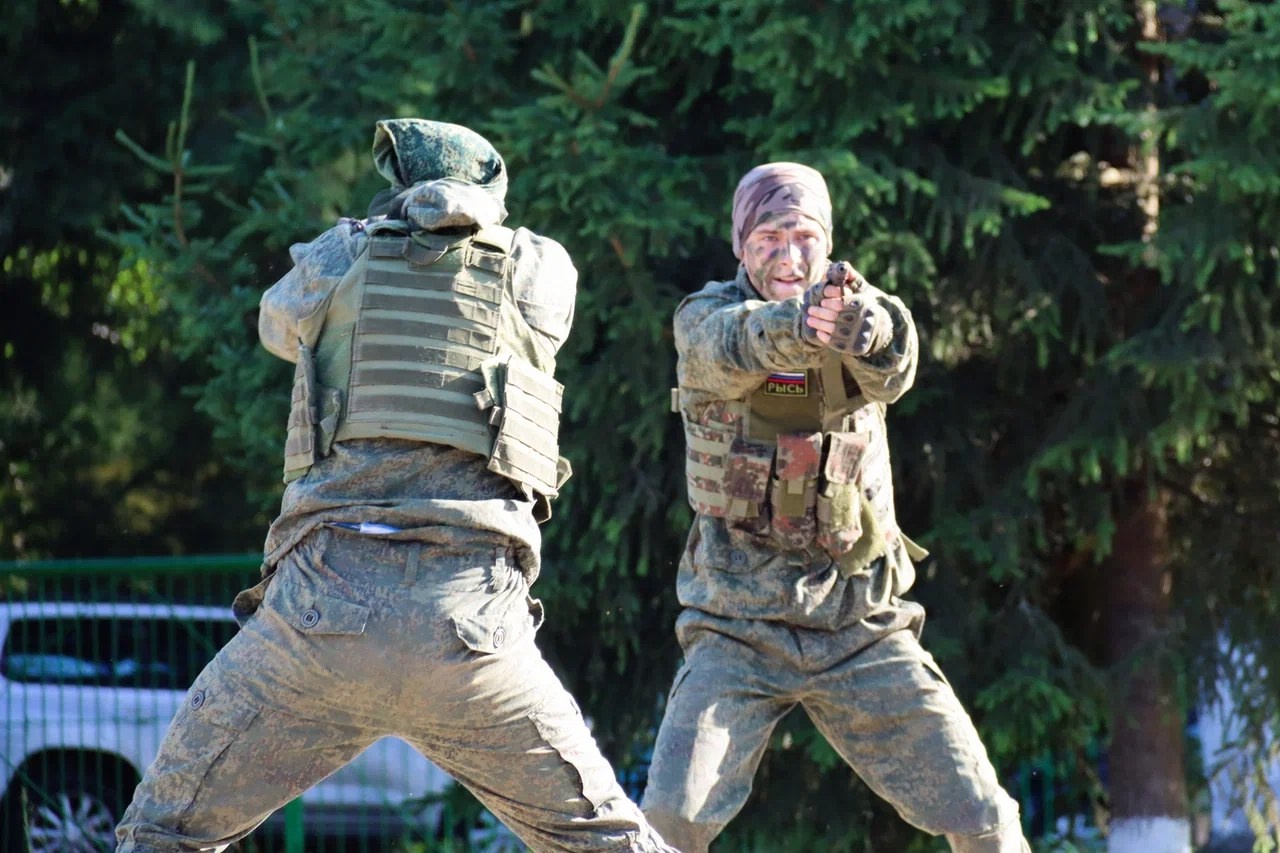 – Ранен в ногу! Нужна эвакуация! – раздался крик. Двое бойцов под условным огнём противника подползли к «пострадавшему» и рывком потащили к укрытию: раненый – не значит побежденный. Лица ребят серьёзные – понимают, что в реальном бою от этих навыков зависит жизнь.