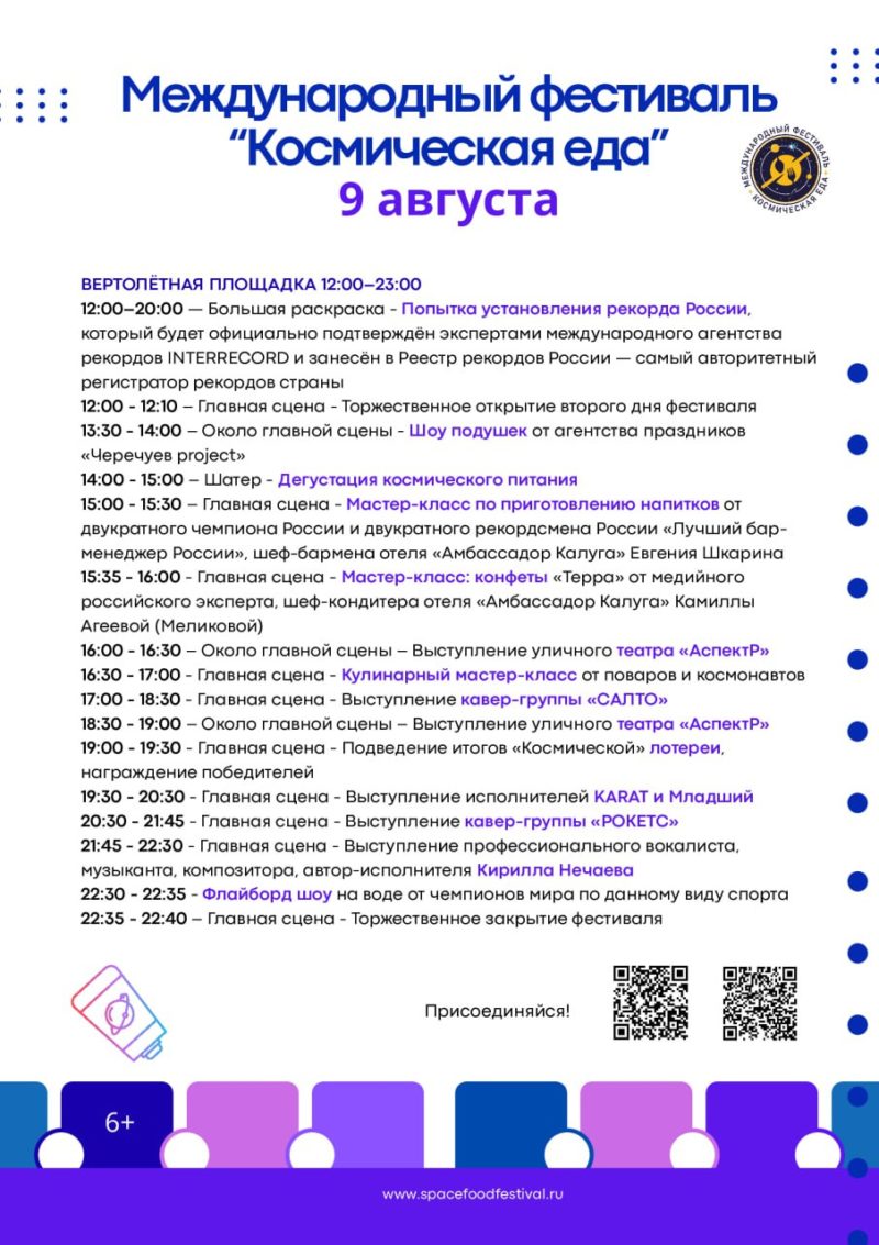 Также 9 августа в Калуге пройдёт фестиваль «Космическая еда». Сохраняйте афиши мероприятий и следите за анонсами в группе управления спорта, чтобы ничего не пропустить.