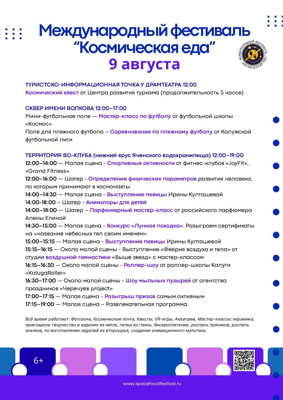 Также 9 августа в Калуге пройдёт фестиваль «Космическая еда». Сохраняйте афиши мероприятий и следите за анонсами в группе управления спорта, чтобы ничего не пропустить.