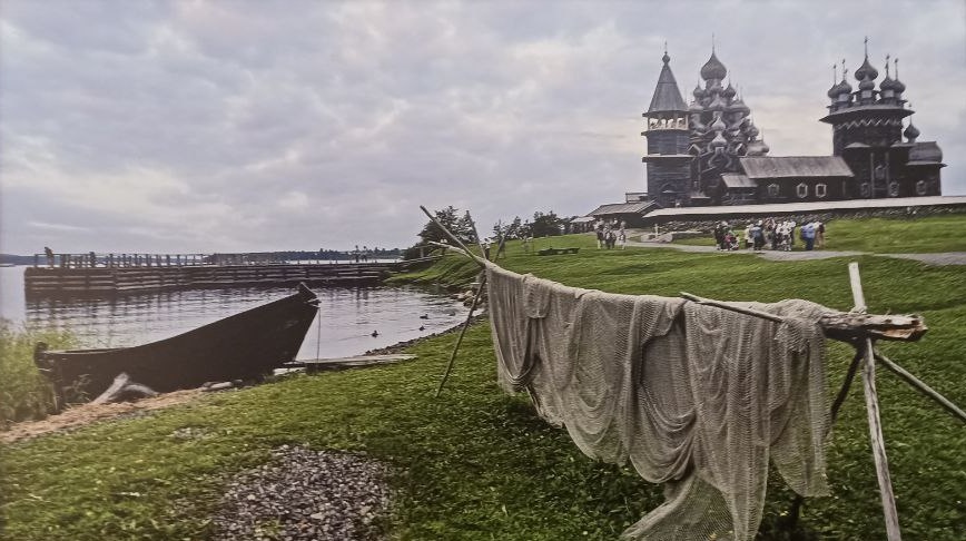 Даже снимая знаменитые достопримечательности, фотохудожник находит интересный ракурс, выбирает редкий, уникальный момент. Вокруг деревянного храма в Плесе, подобно нимбу, сияет солнечное гало. В Кижах знаменитый храм мы видим в отдалении, а на первом плане — рыбацкие сети и лодка на берегу. Как тут не вспомнить о первых апостолах, которые были рыбаками?