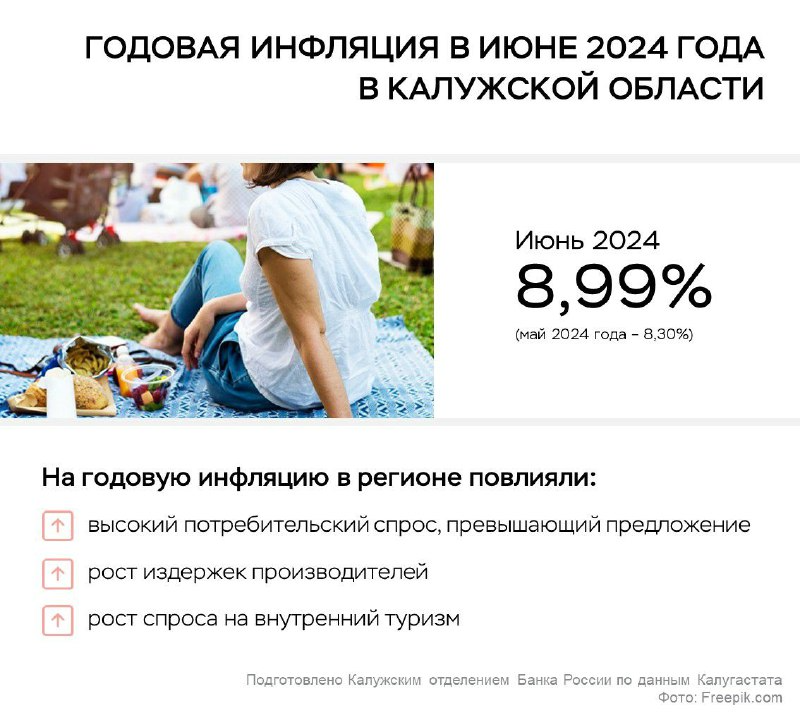 По итогам июня годовая инфляция в Калужской области увеличилась до 9%. Ситуация соответствует общероссийской: по итогам месяца рост цен ускорился в большинстве регионов. Основной причиной высокой инфляции считают сильный внутренний спрос, который пока опережает возможности расширения производства.