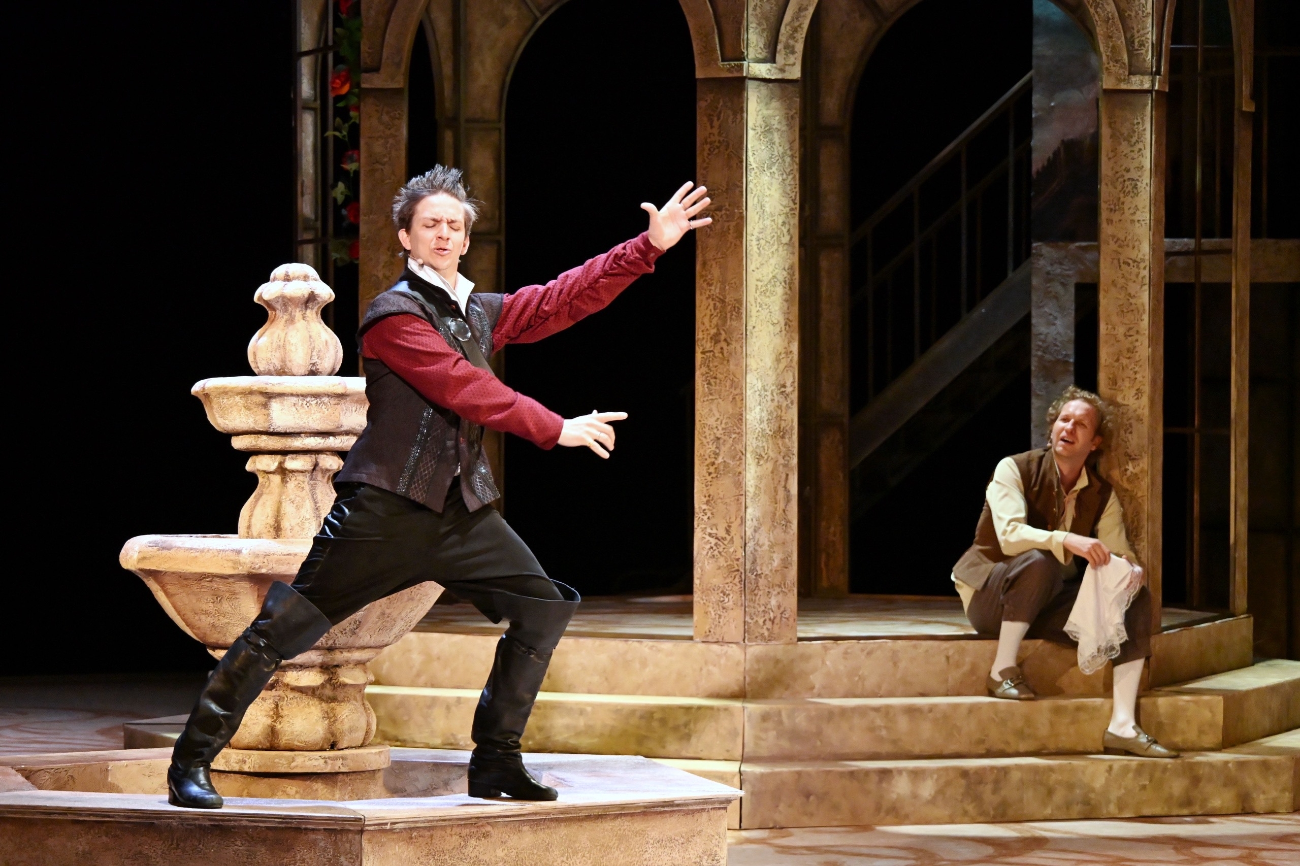 В пьесе Лопе де Вега нет ни служанок с их любовными похождениями, ни долгих поцелуев на балконе. Режиссёр щедро добавил все это в спектакль, будто боясь, что без этого комедия не сработает.