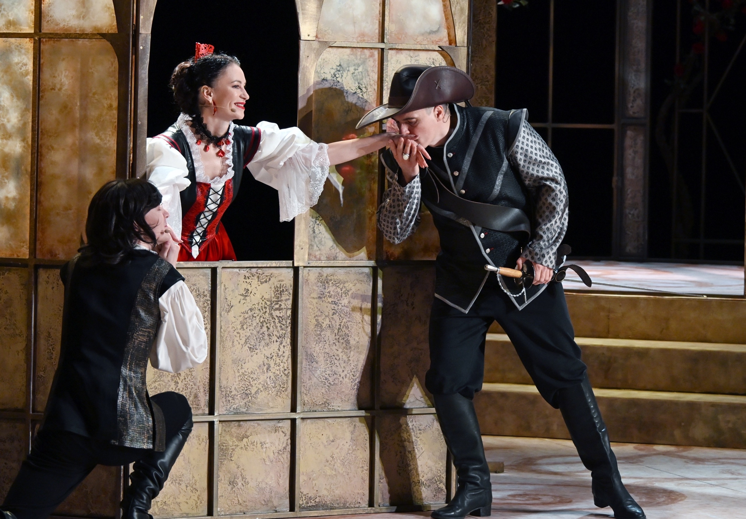 В спектакле есть бой на шпагах (постановщик Владимир Прудников). Это смотрится действительно динамично и азартно. Тот самый искомый случай, когда физическое действие работает без перебора.