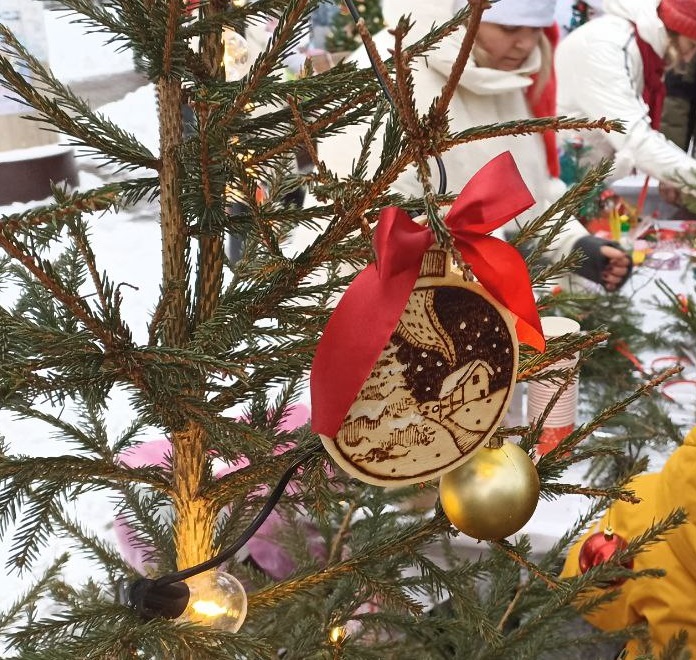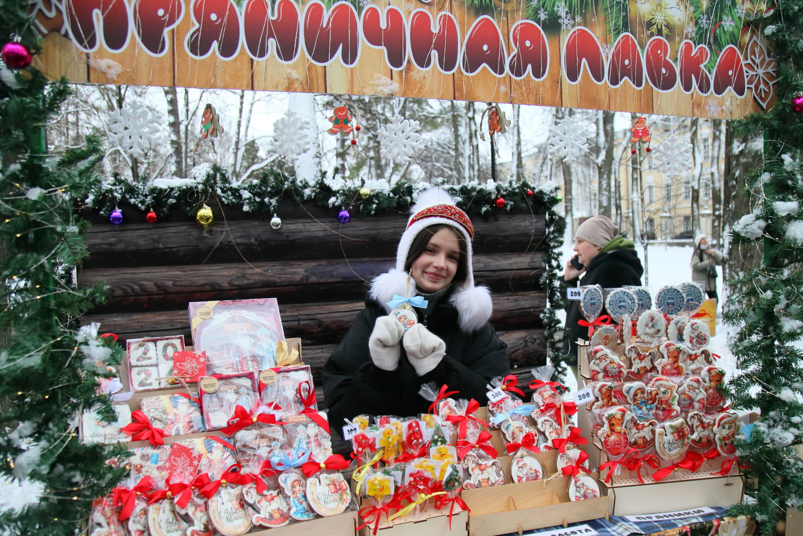 На площадке городского праздника калужан ждали веселые новогодние персонажи, красочные фотозоны и новогодняя ярмарка, где можно было приобрести новогодние подарки и сувениры ручной работы: елочные украшения, символы года — лошадок, теплые носки и варежки, мед и сладости. Каждого покупателя бесплатно угощали горячим травяным чаем.
