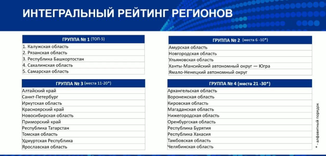 Калужская область возглавила рейтинг регионов, наиболее активно и результативно применяющих беспилотные авиационные системы для решения экономических задач. Рейтинг был представлен на сессии Минтранса России «Беспилотные горизонты: единый путь к автономному будущему». Помимо Калужской области в пятерку самых дронофицированных составители рейтинга включили Рязанскую область, Башкирию, Сахалинскую и Самарскую области.