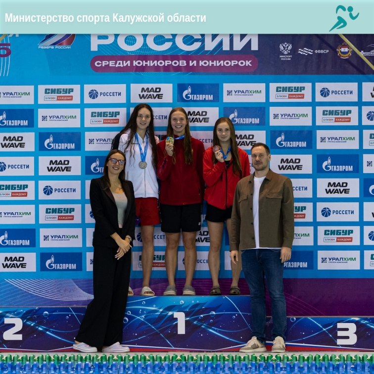 Спортсмены соревновались не только в индивидуальных заплывах, но и объединили усилия в смешанной эстафете 4х50 метров комплексным плаванием. В этой дисциплине сборная Калужской области, в состав которой вошли Полина, Екатерина, Максим Курбанов и Кирилл Веремчук, поднялась на третью ступень пьедестала почета.