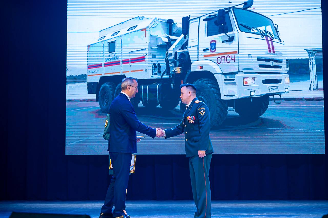 Церемония прошла в ДК «Арена КТЗ» на торжественном мероприятии, посвященном 35-й годовщине МЧС. Перед началом собрания губернатору было продемонстрировано оборудование и снаряжение, используемое спасателями, в том числе — беспилотники. С их помощью ищут потерявшихся людей и очаги пожаров.