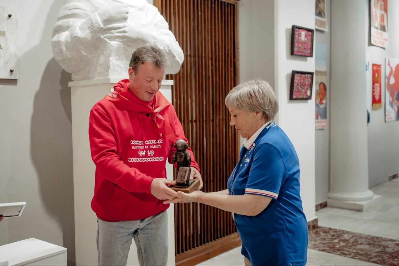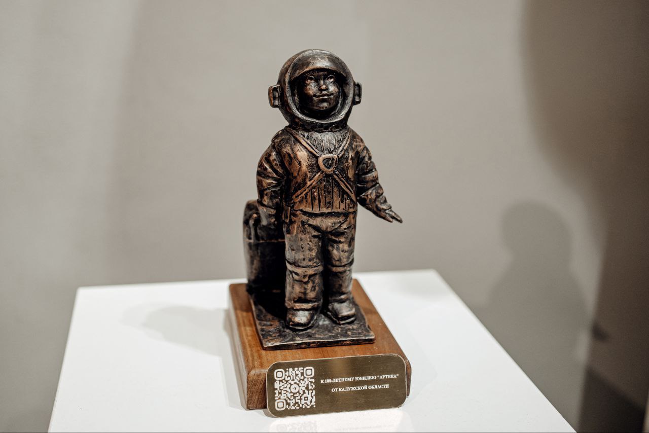 От имени Владислава Шапши и жителей Калужской области артековцев поздравил с юбилеем первый заместитель губернатора Константин Горобцов. И подарил этому детскому центру фигурку космонавтика-«артековца» работы скульптора Алины Фарниевой.
