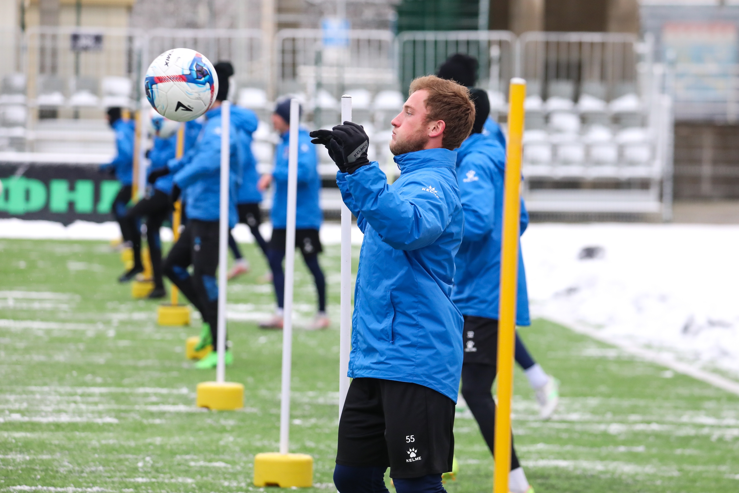 В первой контрольной игре с казахстанским «Каспием» Николай Суханов забил гол с пенальти, и его команда завершила матч победой.