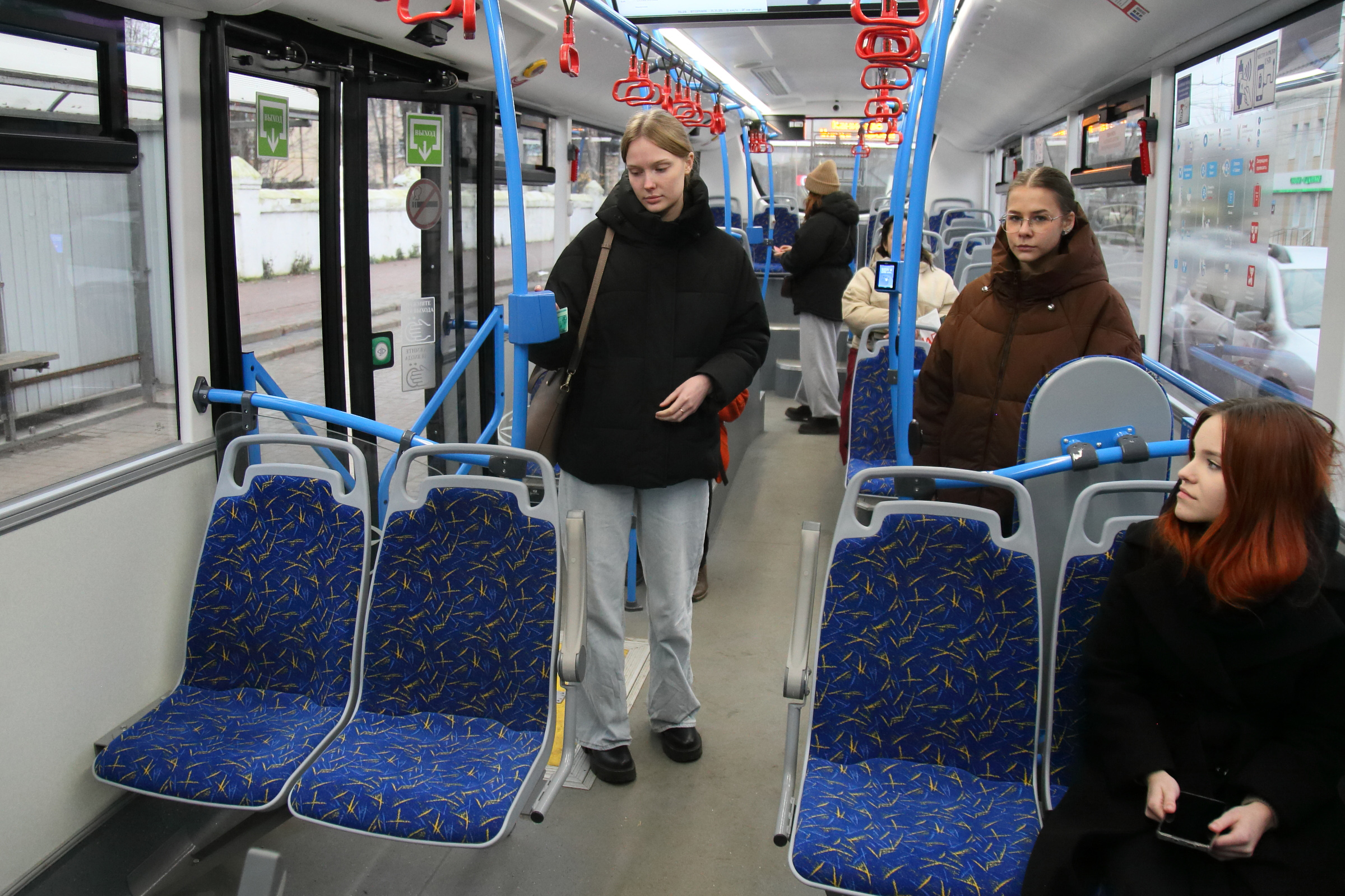 Забота о комфорте пассажиров продумана до мелочей. В салоне просторно и светло, мягкие сиденья с яркой отделкой. Установлены четыре валидатора вместо трёх, что ускоряет посадку, и больше USB-зарядок для гаджетов. Динамик автоматически объявляет номер маршрута и конечную остановку.