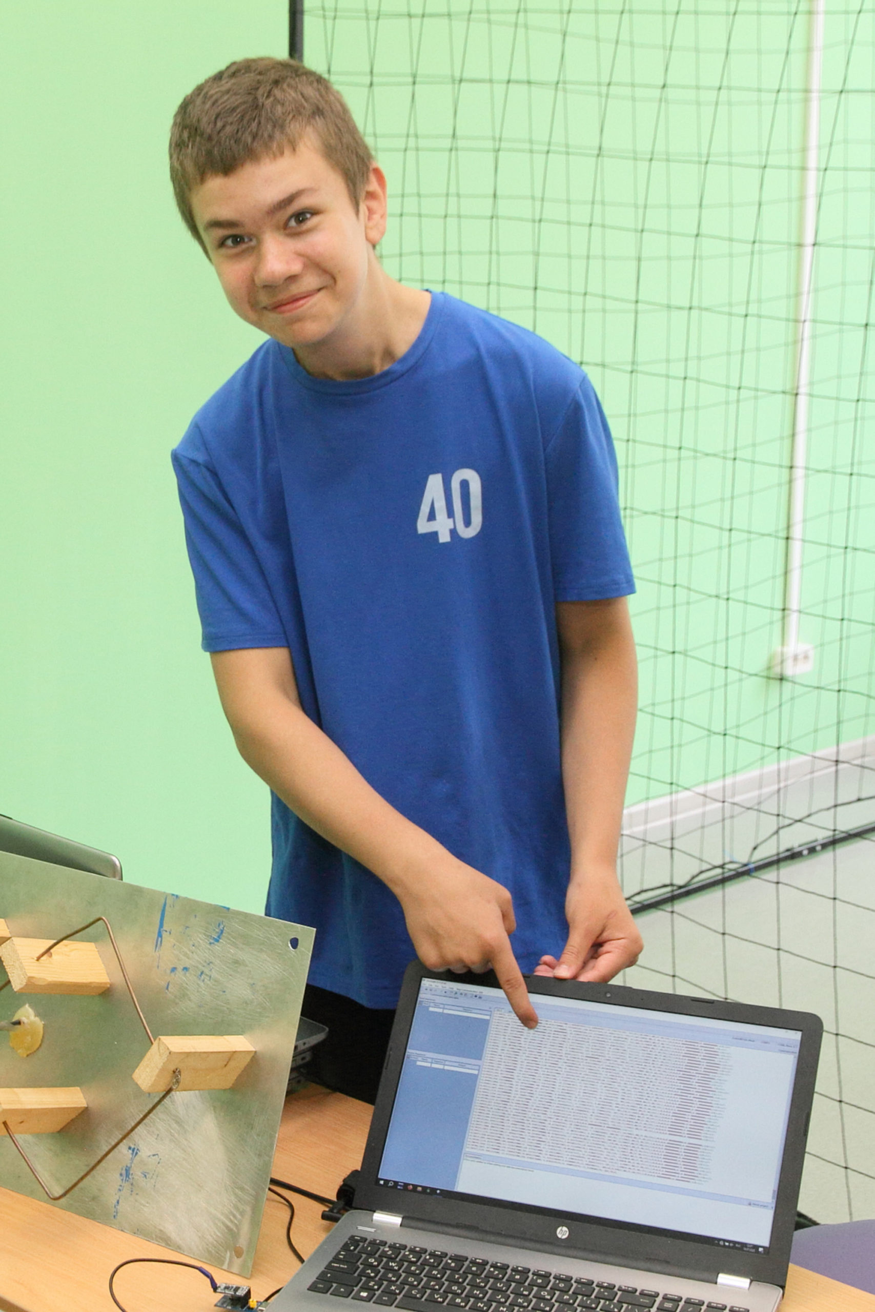 – Это спутник, – рассказывает Макар Оверкович. – Не удивляйтесь его виду, ведь он не обязательно должен выглядеть как спутник 1957 года – круглый и с антеннами. Наш аппарат имеет вид небольшого цилиндра. Платы нам предоставили организаторы чемпионата, а всю архитектуру, компоновку, схемотехнику разрабатываем сами. Лететь наш спутник должен с помощью ракеты, которую нам также предоставили организаторы. Чтобы аппарат остался целым и невредимым, мы сконструировали для него систему спасения – парашют с отверстием. Данные, которые собирает спутник, мы получаем и обрабатываем с помощью наземной станции для приёма телеметрии.