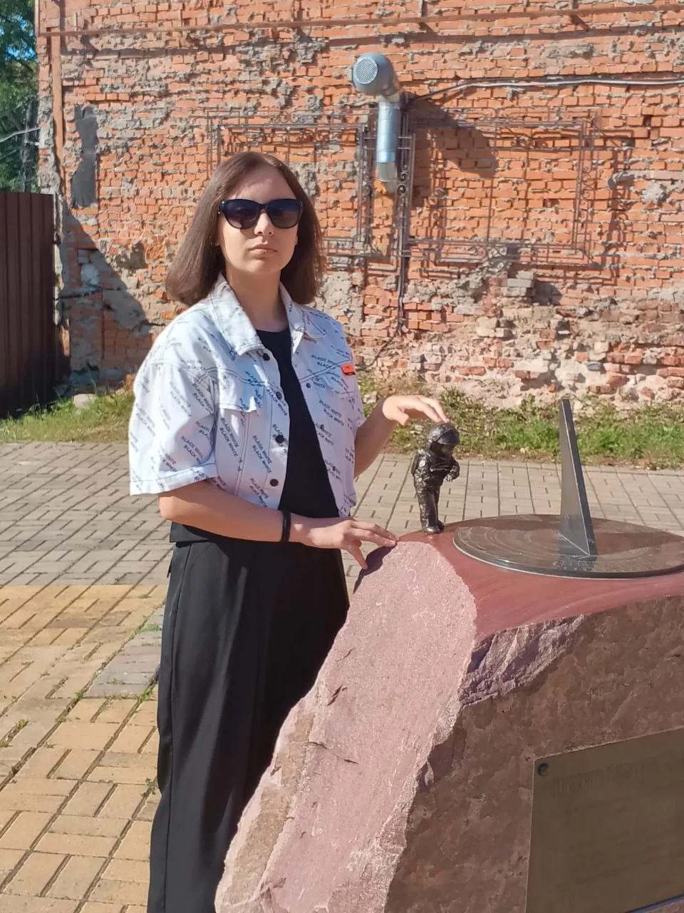 29 июня 2024 года. Виктория Доронина на открытии скульптуры «Космонавтик-ученик» во дворе родной школы № 5.