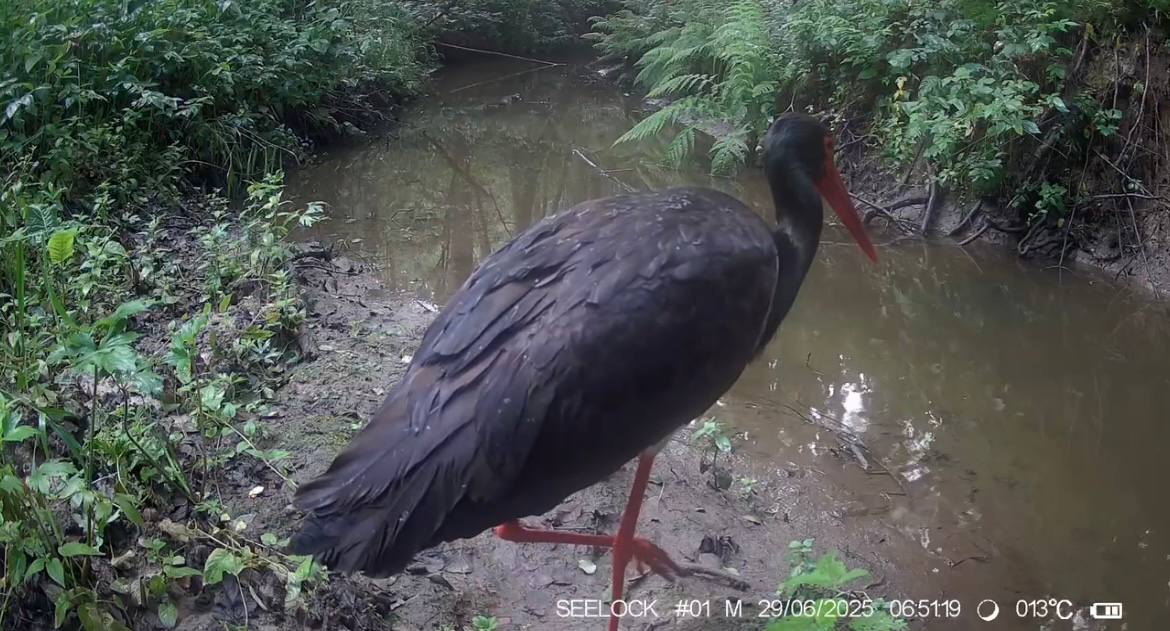 Взрослый чёрный аист попался на фотоловушки заповедника «Калужские засеки» .