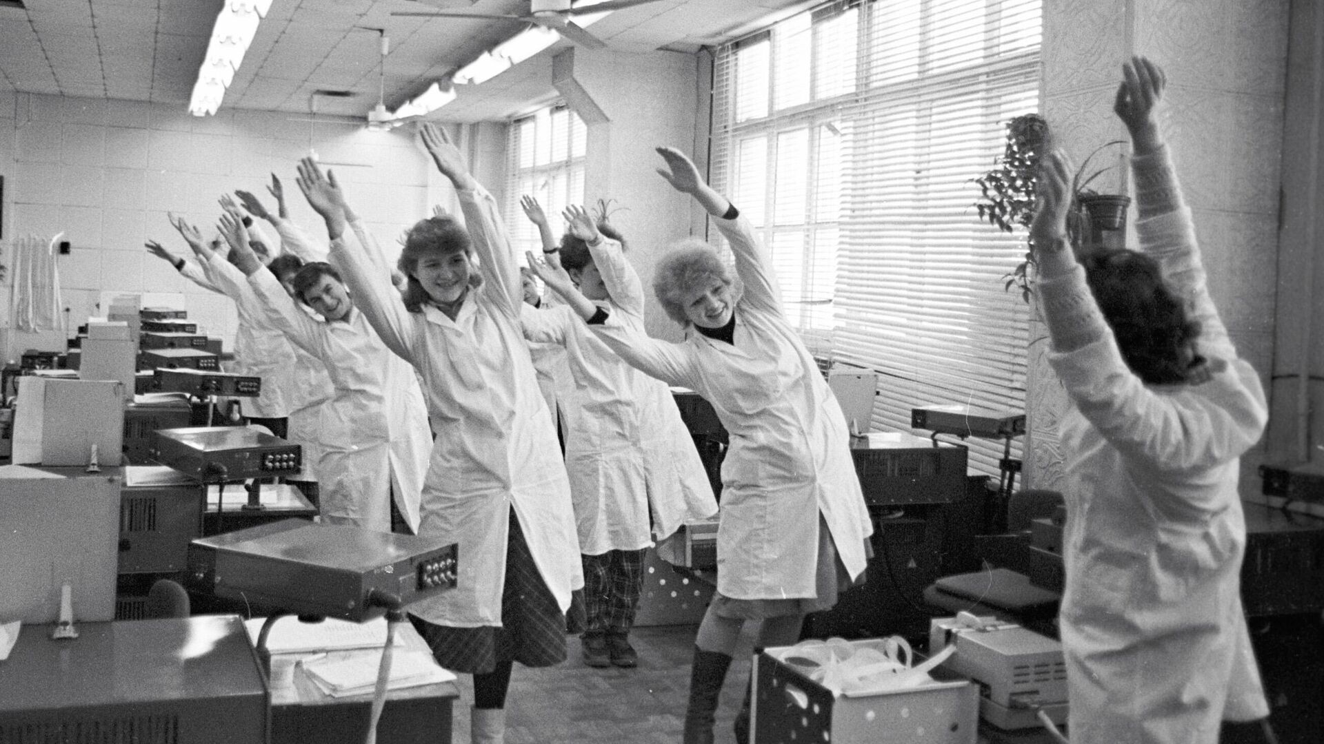 В советское время комплекс упражнений утренней гимнастики задорно диктовали по радио. Ее слушали миллионы! Вся страна под бодрый марш и энергичный голос с самого утра подпрыгивала, приседала, наклонялась, махала руками и шагала. А ровно в 11:00 начиналась «Производственная гимнастика». Советская зарядка отлично работает до сих пор.