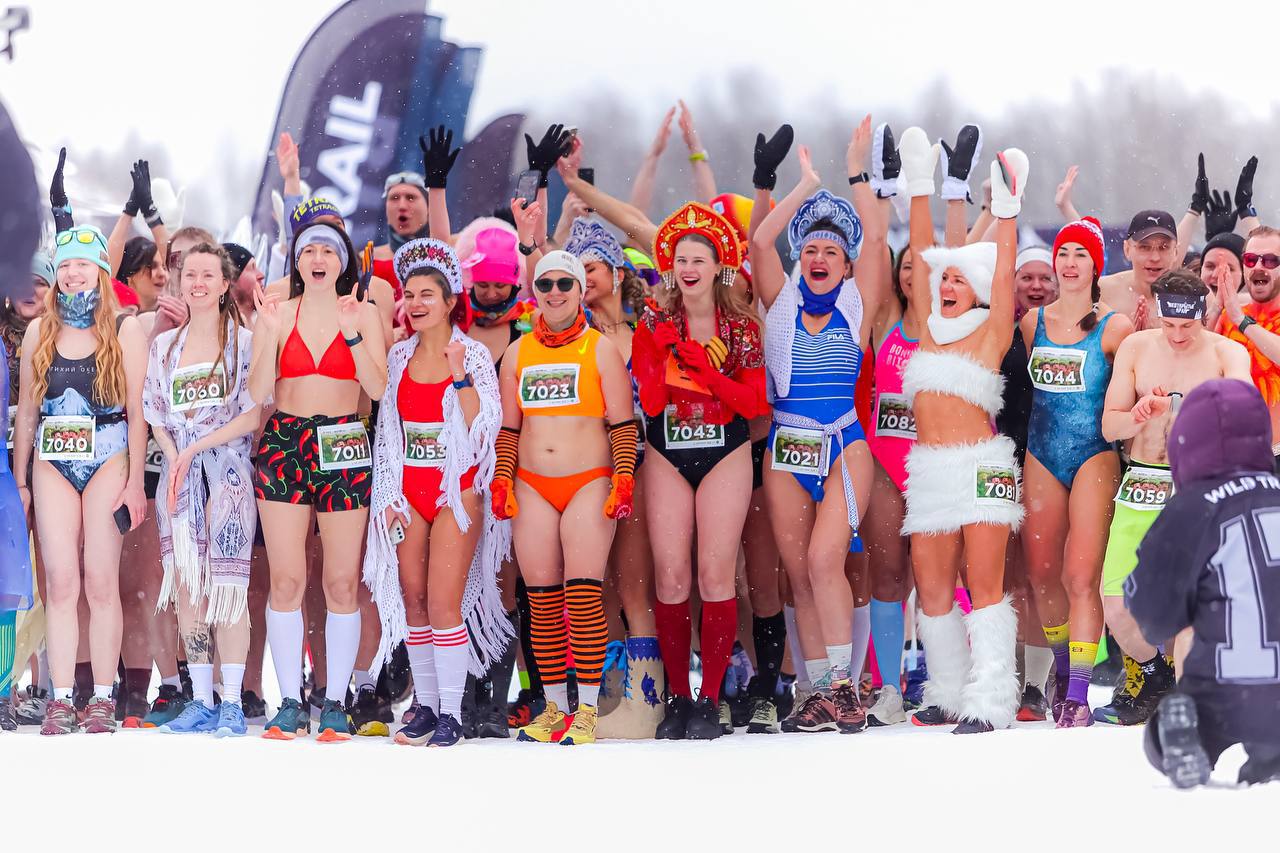 В субботу стартовали лыжные гонки в 5,10 и 30 км, где участники осваивали новую трассу, а в воскресенье зрелище стало еще более захватывающим – забег в купальниках на 900 метров, который просто заворожил зрителей. Организаторы подготовили конкурс костюмов на тему «Русские сказки», и участники с креативом подходили к созданию своих образов.
