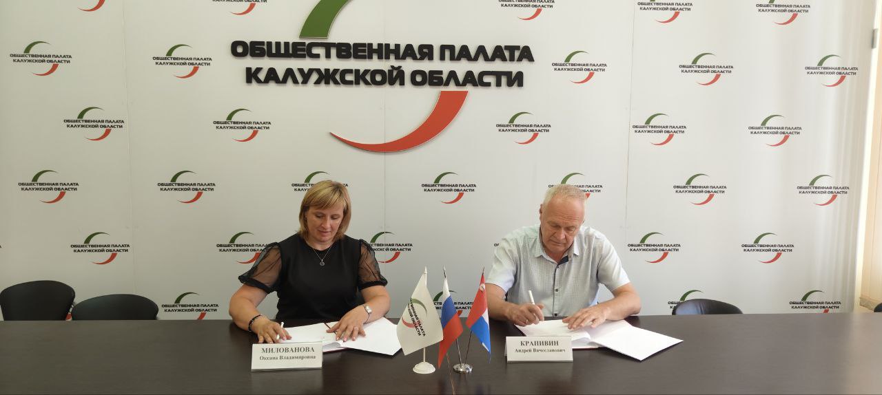 Сегодня состоялось подписание соглашения о сотрудничестве между Общественной палаойа Калужской области и региональным отделением Общероссийской общественно-государственной организации «Добровольное общество содействия армии, авиации и флоту России» Калужской области.
