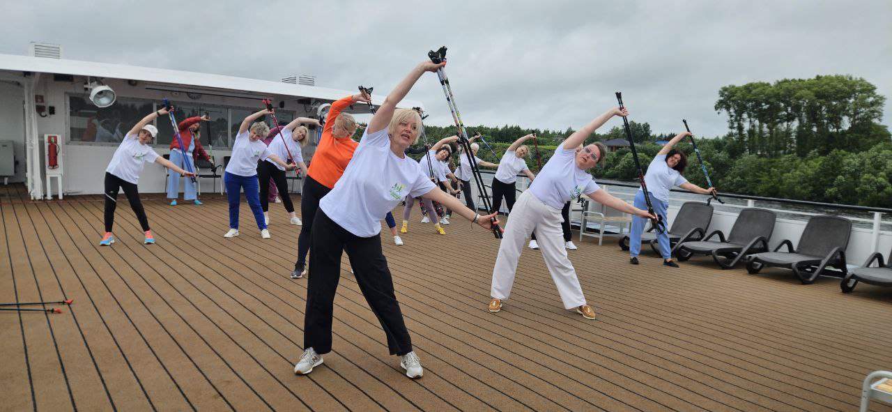– Многие люди в возрасте любят ходить с палочками. Это, безусловно, полезное занятие, и оно положительно скажется на их здоровье! Но северная ходьба имеет особую технику, не всякий человек, гуляющий с палками, занимается именно правильной скандинавской ходьбой. Во-первых, перед тем как идти, мы обязательно проводим небольшую разминку, чтобы подготовить организм. Во-вторых, я всегда говорю новичкам, что палки – это наш тренажёр, а не опора. При ходьбе мы не столько опираемся на палки, сколько используем их для работы плеч, рук и кистей. В скандинавской ходьбе задействованы до 95 % мышц всего тела, а не только ноги, как при обычной. Такая ходьба хорошо тренирует сердечно-сосудистую систему, формирует правильную осанку, а также снижает нагрузку на позвоночник и суставы. Также не забываем держать хороший темп, ведь мы выполняем полноценную кардиотренировку, а не просто гуляем. В конце всегда проводим заминку, расслабляем мышцы и растягиваемся.