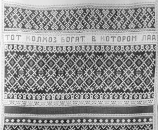 Калужские архитекторы Павел Перминов и Евгений Киреев искали пути, как сделать непривлекательные фасады жилых микрорайонов запоминающимися, и обратили внимание на альбом калужских вышивок, составленный Маргаритой Гумилевской. Внимание Павла Перминова привлекли богатые фактурные возможности перевити, орнамент которой строго геометризирован, – он создается по выдернутым ниткам, продольным и поперечным. Это стало толчком к появлению рисунков по тарусским мотивам на калужских панельных хрущевках.
