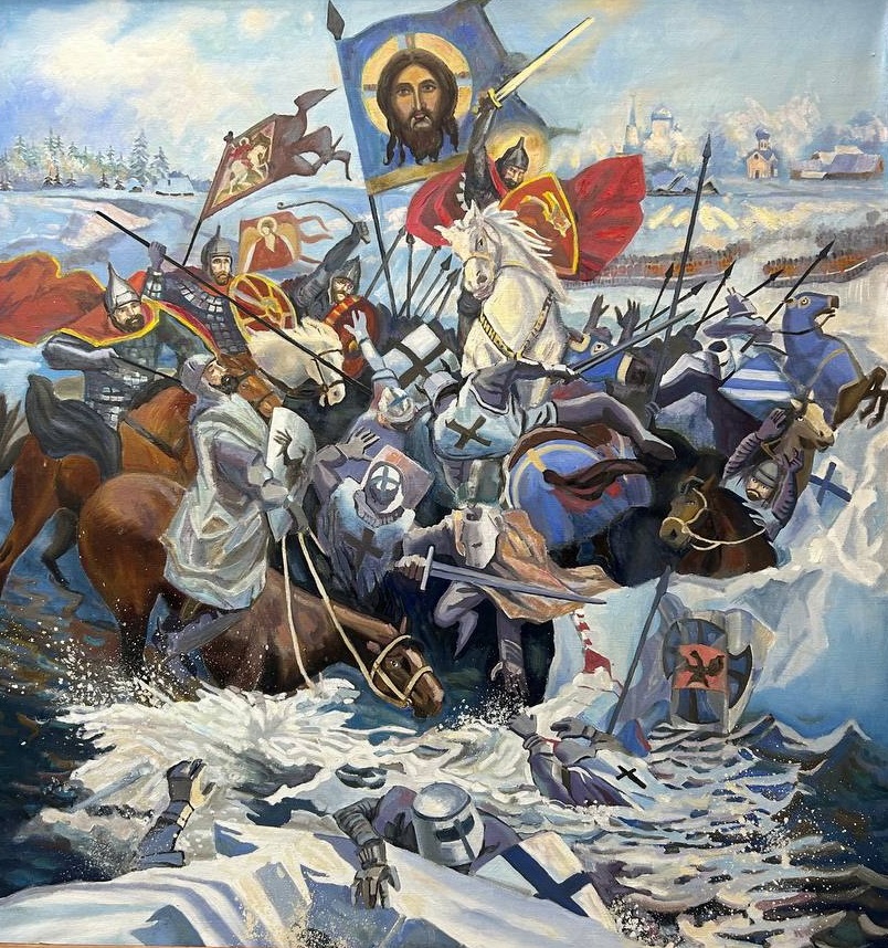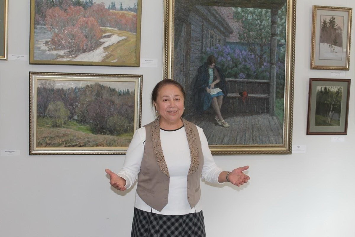 Рядом с полотнами мастера расположились работы её учеников, продолжающих традиции своего педагога. Здесь и исторические, и батальные сцены, портреты известных святых, калужские храмы и пейзажи, работы, посвящённые священникам, несущим служение в зоне специальной военной операции. Такие разные картины объединяет общий лейтмотив – поиск пути к счастью.