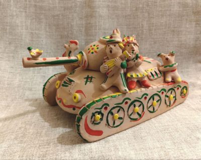 Есть в коллекции Вадима и хлудневский танк. Игрушка слеплена им для проекта Ассоциации народных художественных промыслов России, которая проводила передвижную выставку в честь 80-летия Победы.