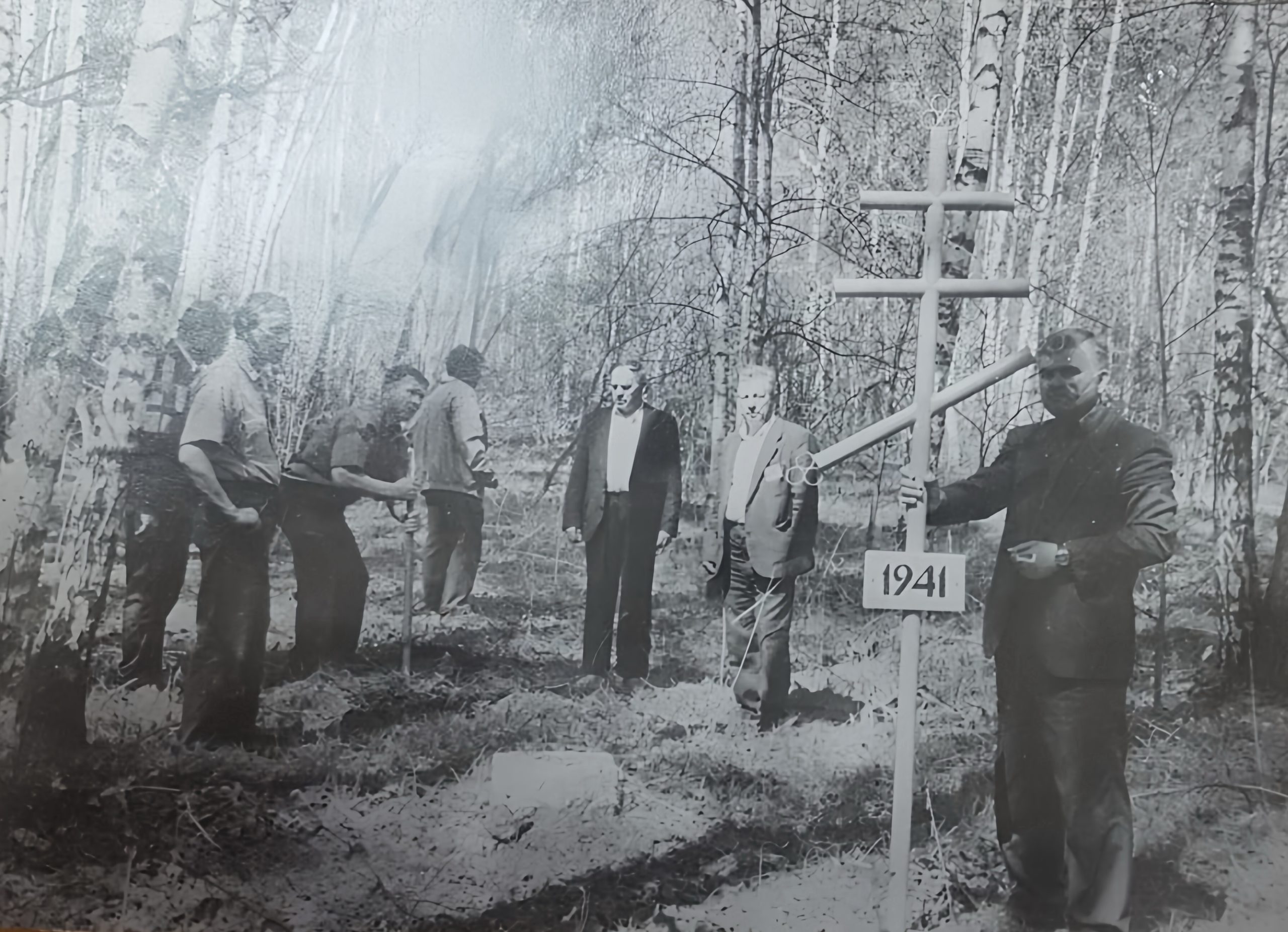 Дочь А. Робула Людмила (третья справа) приехала в Калугу, как она думала, на место гибели своего отца. Но документы, позволяющие прояснить его судьбу после осени 1941 года, появились в общем доступе лишь спустя 80 лет после описываемых событий.