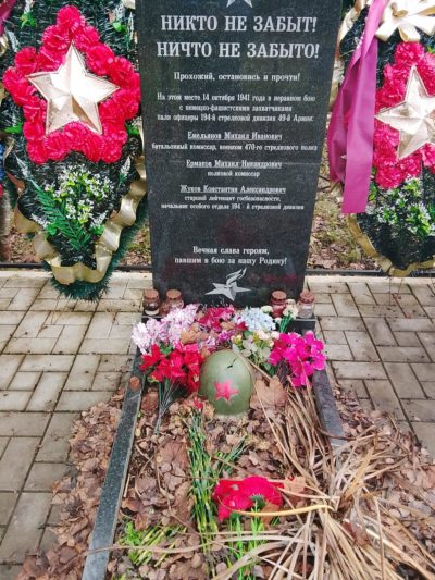 У деревни Григоровка, которая была занята немцами 14 октября, наши офицеры напоролись на врага. Что именно произошло в тот день, достоверно уже сказать невозможно. К. Шилов, написавший в 80-х годах исчерпывающее исследование о боевом пути 194-й СД на основе архивных материалов и личных воспоминаний ветеранов, писал, что «к сожалению, полковой комиссар М. Н. Ермаков и сопровождавшие его лица после отъезда из отряда пропали без вести – они не появились на КП армии и не вернулись в сводный отряд. По сведениям, которые все еще не получили документального подтверждения, группа военкома Ермакова по дороге на командный пункт командарма попала в засаду и погибла». В донесениях о безвозвратных потерях эти офицеры числились как пропавшие без вести. В журнале боевых действий 194-й СД данные об этом дне отсутствуют. Все, что мы имеем, – свидетельства местных жителей, которых, по понятным причинам, уже не расспросить.