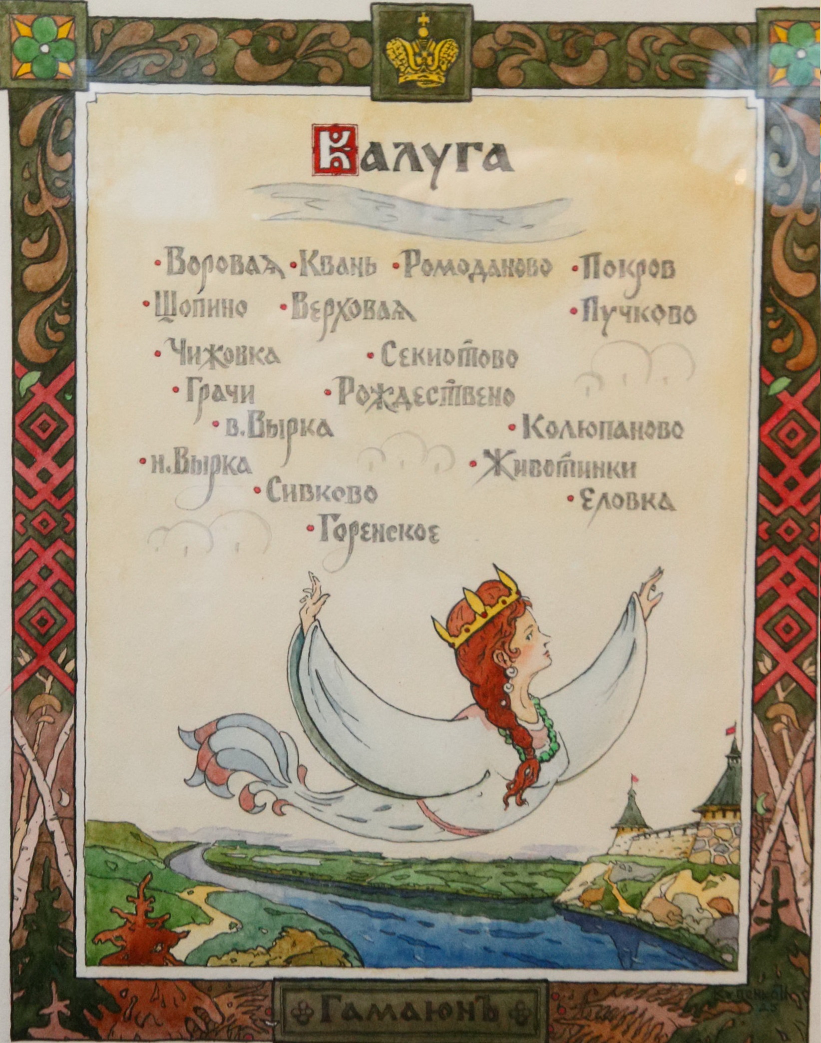Художник и графический дизайнер Игорь Купенко исследует тему Гамаюнщины. Художник создал стилизованную карту этой местности, куда входило 17 селений на правом берегу Оки, и представил макет размещения на борту красного калужского автобуса афиши выставки «Символы старины».
