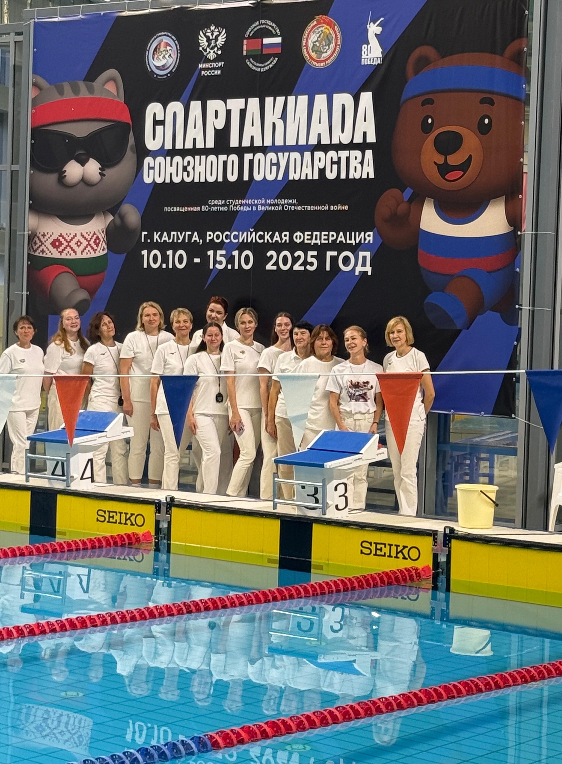 В Калуге проходит Спартакиада союзных государств среди студенческой молодёжи, посвященная 80-летию Победы в Великой Отечественной войне. Судействует на спартакиаде бригада по плаванию СШОР «Труд». Соревнуются — студенты КГУ им. К.Э. Циолковского. В составе команды университета воспитанники спортшколы: Владимир Башун, Ника Гердт, Кирилл Карягин. Фото спортшколы «Труд»