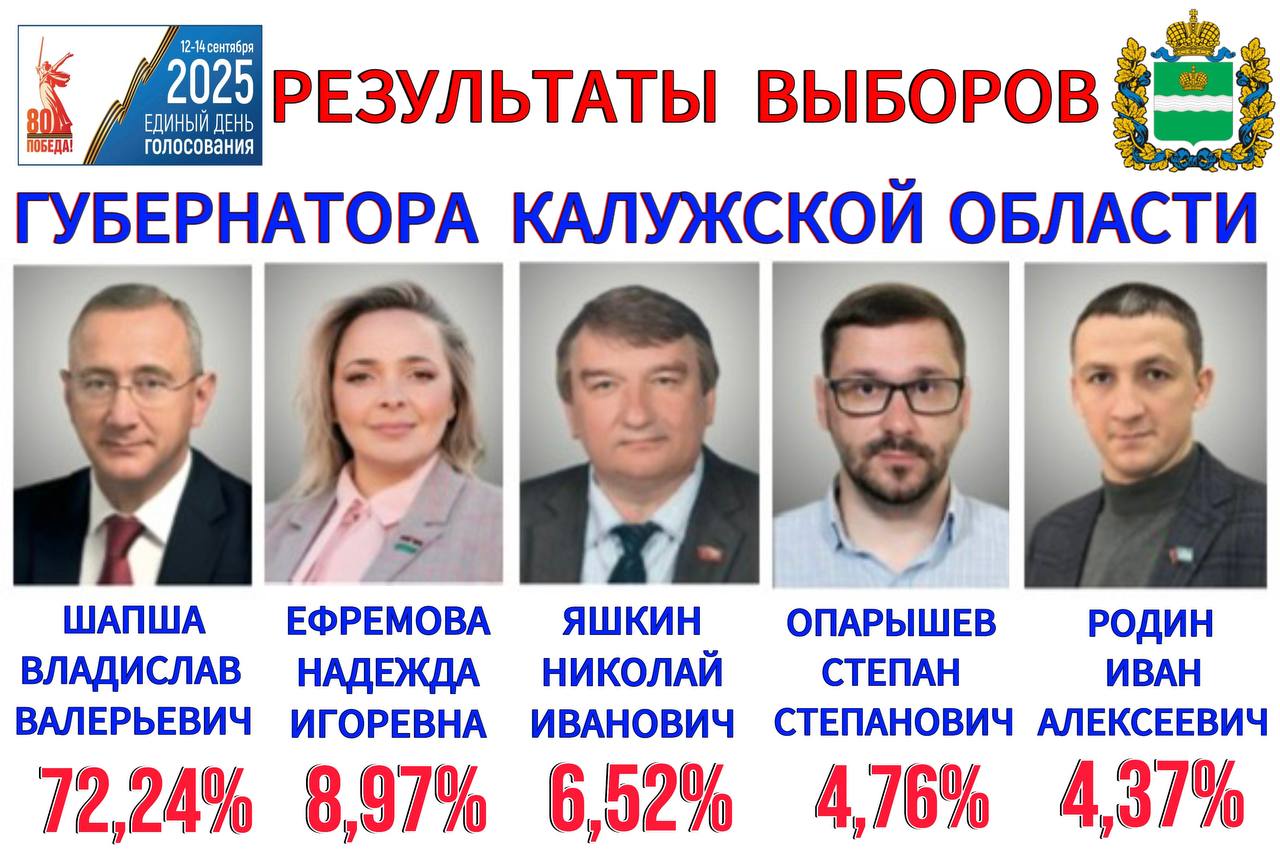 По итогам голосования на должность Губернатора Калужской области избран Владислав Валерьевич Шапша, выдвинутый региональным отделением политической партии «Единая Россия» и получивший 252 179 голосов избирателей, что составляет 72,24 % голосов от общей явки. За других зарегистрированных кандидатов голоса избирателей распределились следующим образом: Надежда Игоревна Ефремова, выдвинута политической партией «Справедливая Россия – патриоты – за правду» […]