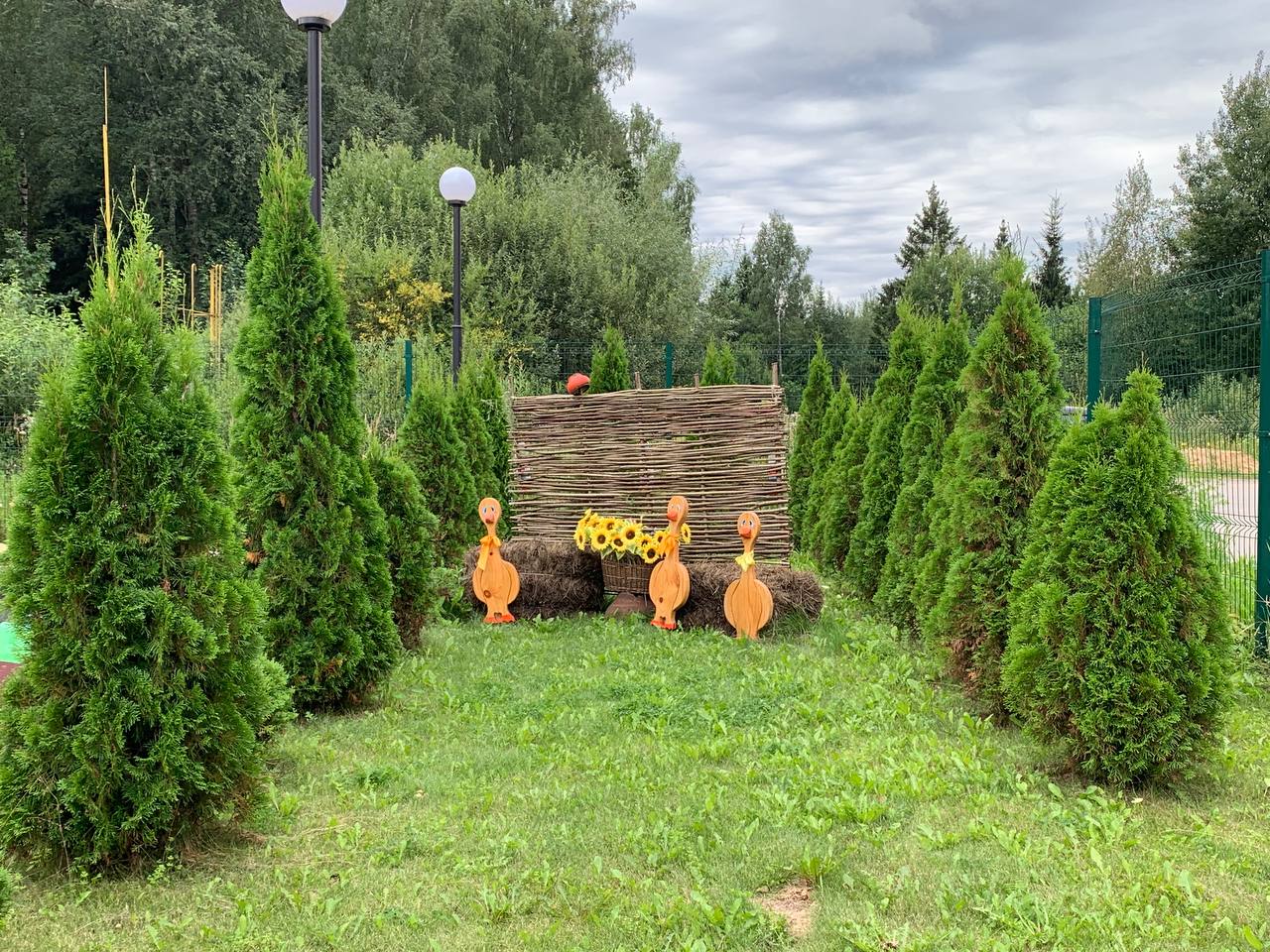 В детском саду «Аленький цветочек» царит настоящая сказка. Здесь невероятно ухоженный и уютный двор. Ровно подрезанные деревья образовали маленький лес, а в тени величественного кедра растут настоящие белые грибы.