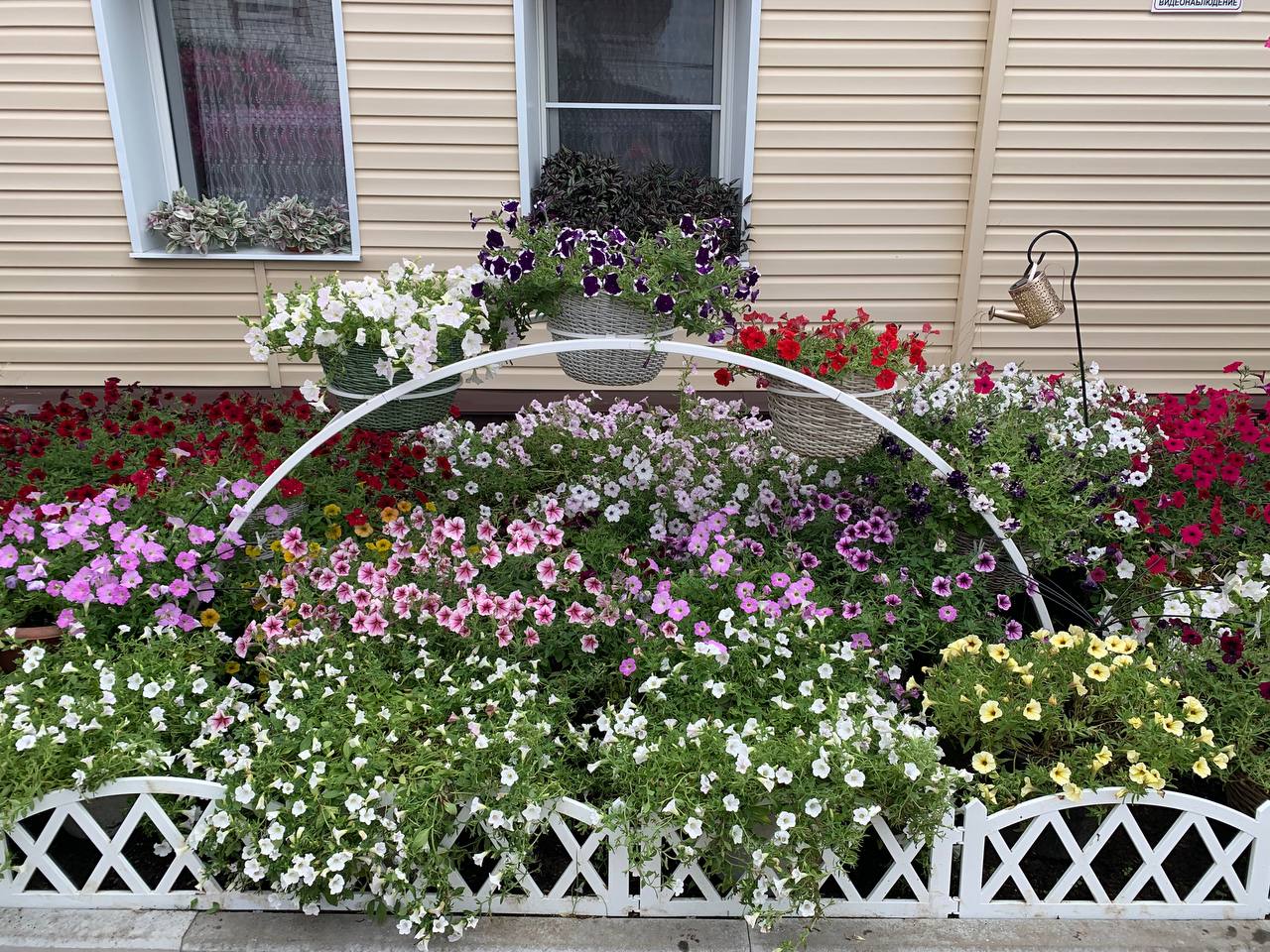 Так, на Северной, 28 палисадник из петуний радует прохожих. Алые, фиолетовые, белые, розовые, желтые цветы сливаются в волшебную симфонию, создавая настроение солнечного лета даже в пасмурные дни. Их сладкий аромат окутывает пространство. Цветоводство здесь настоящее искусство.