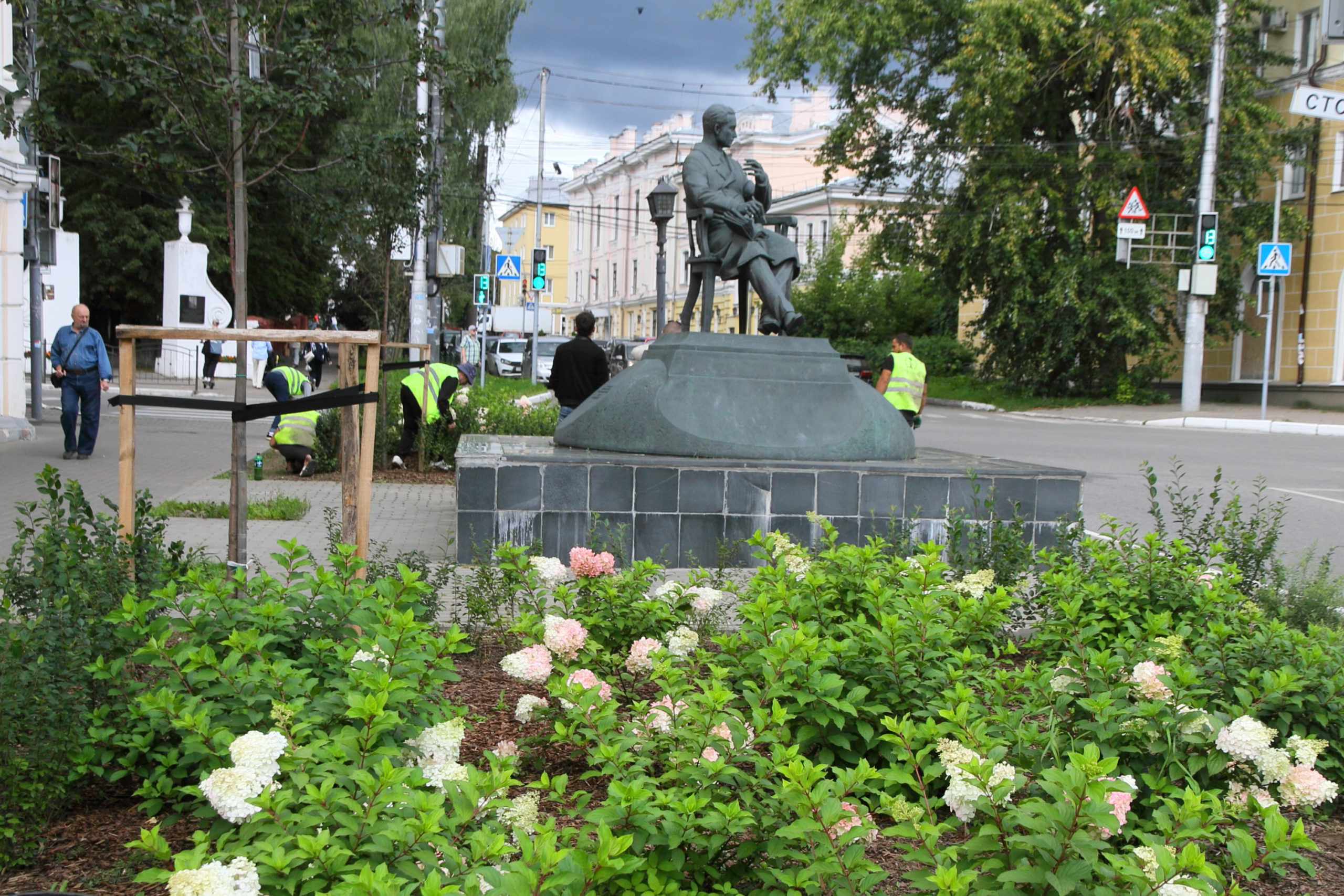 В этом году на городских локациях в рамках контракта на озеленение города впервые поселились кустарники гортензии метельчатой. Это выносливое, неприхотливое и очень красивое растение цветет с июля и до самых заморозков уже в первый год жизни, отлично переносит дождливую погоду и не осыпается. Зонируя участки, гортензия формирует живые массивы, клумбы и цветники. Ее можно увидеть на большом газоне возле магазина «Кругозор», в сквере Медицинских работников и у памятника Чижевскому.