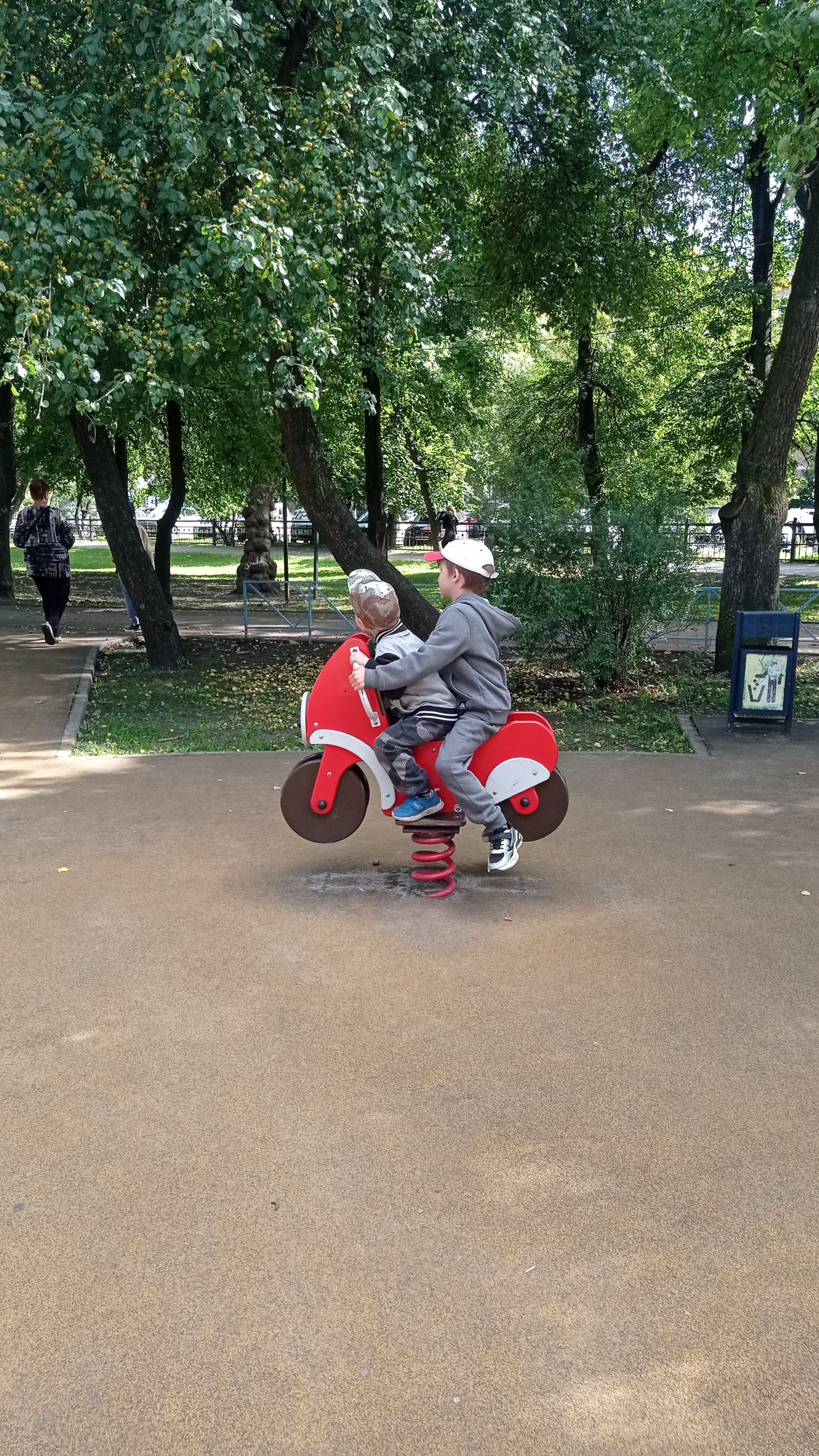 – Этой площадке девять лет, – продолжает Сергей Синицын. – Появилась она в 2016 году. Здесь постоянно играют дети. В этом году поставили новые элементы: лошадку для малышей и вот такую машинку. Отремонтировали качели.