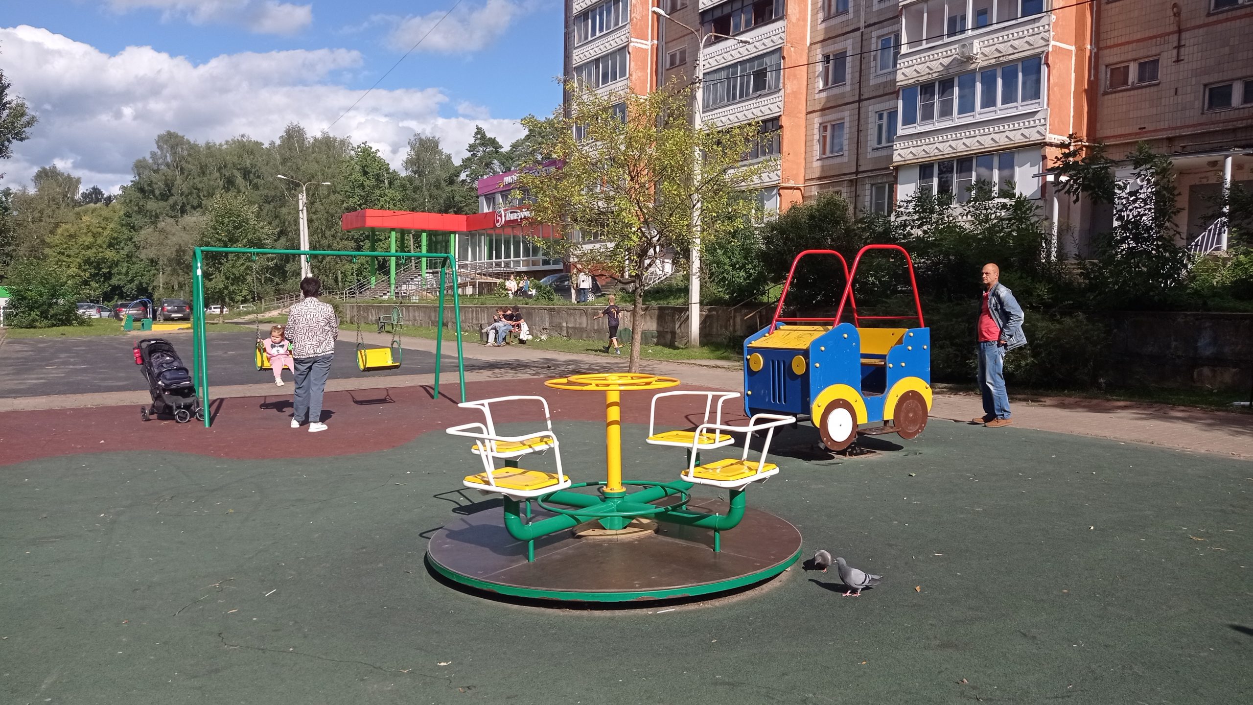 – Здесь недавно отремонтировали сломанную карусель. Думали, что ее уже не починить, – говорит Сергей Синицын. – Но восстановили. У сломанной горки полностью заменили пластиковый элемент. Установили информационный стенд.