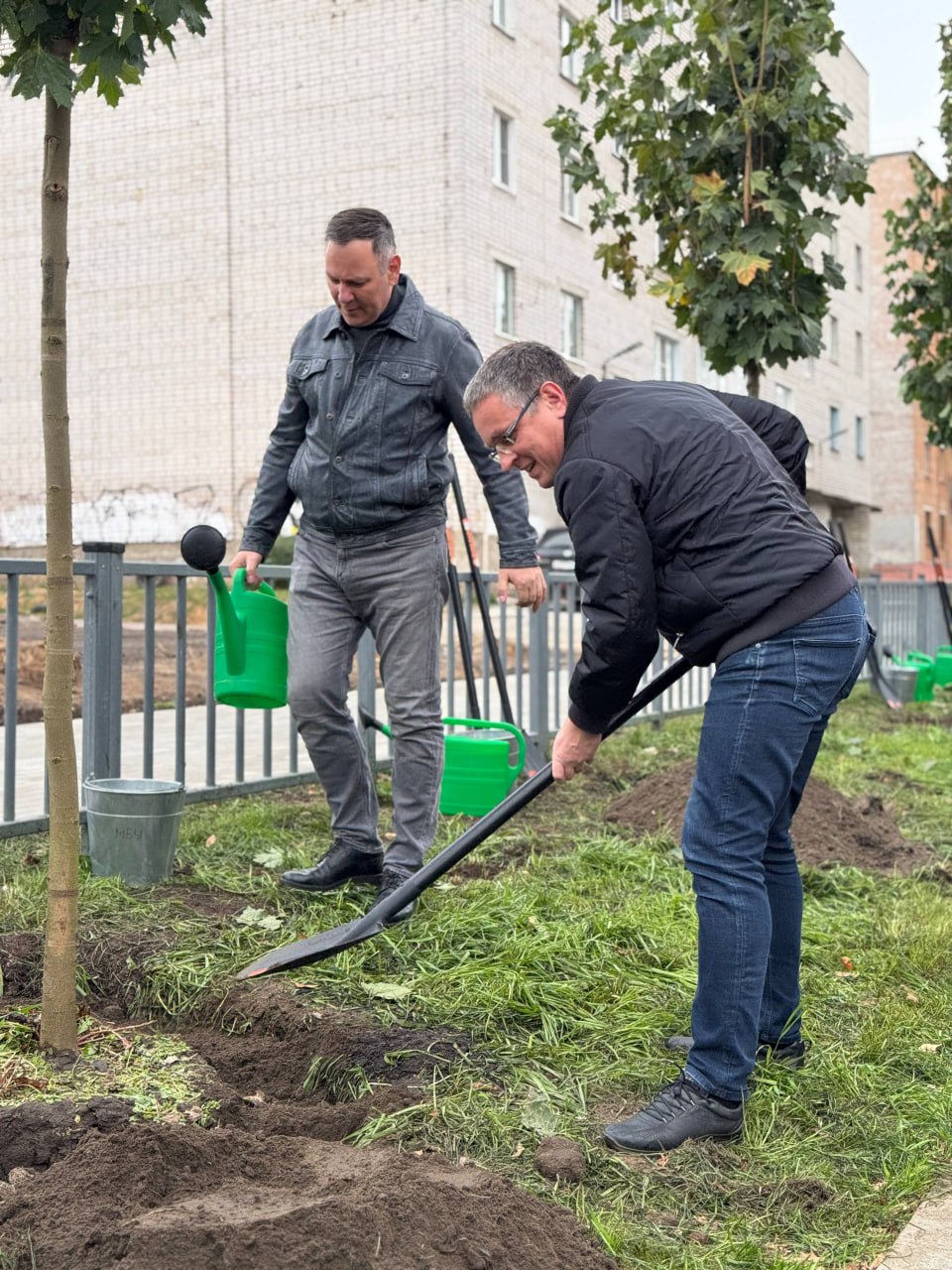Врио главы Калуги Дмитрий Денисов, председатель гордумы Юрий Моисеев, депутаты и сотрудники городской администрации 3 октября приняли участие в общественной приемке отремонтированной улицы Чижевского и посадке деревьев. На четной стороне этой улицы были высажены десять кленов-крупномеров. Ранее деревья были высажены на нечетной стороне.
