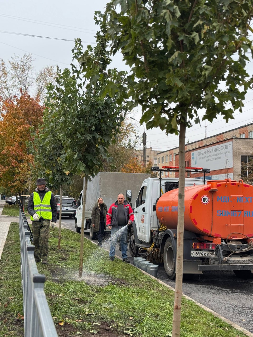 Посадка деревьев стала завершающим этапом капремонта этой улицы, начатого два года назад. На первом этапе были заменены сети. В этом году отремонтировали дорожное полотно, тротуары, сделали газоны и нанесли разметку.