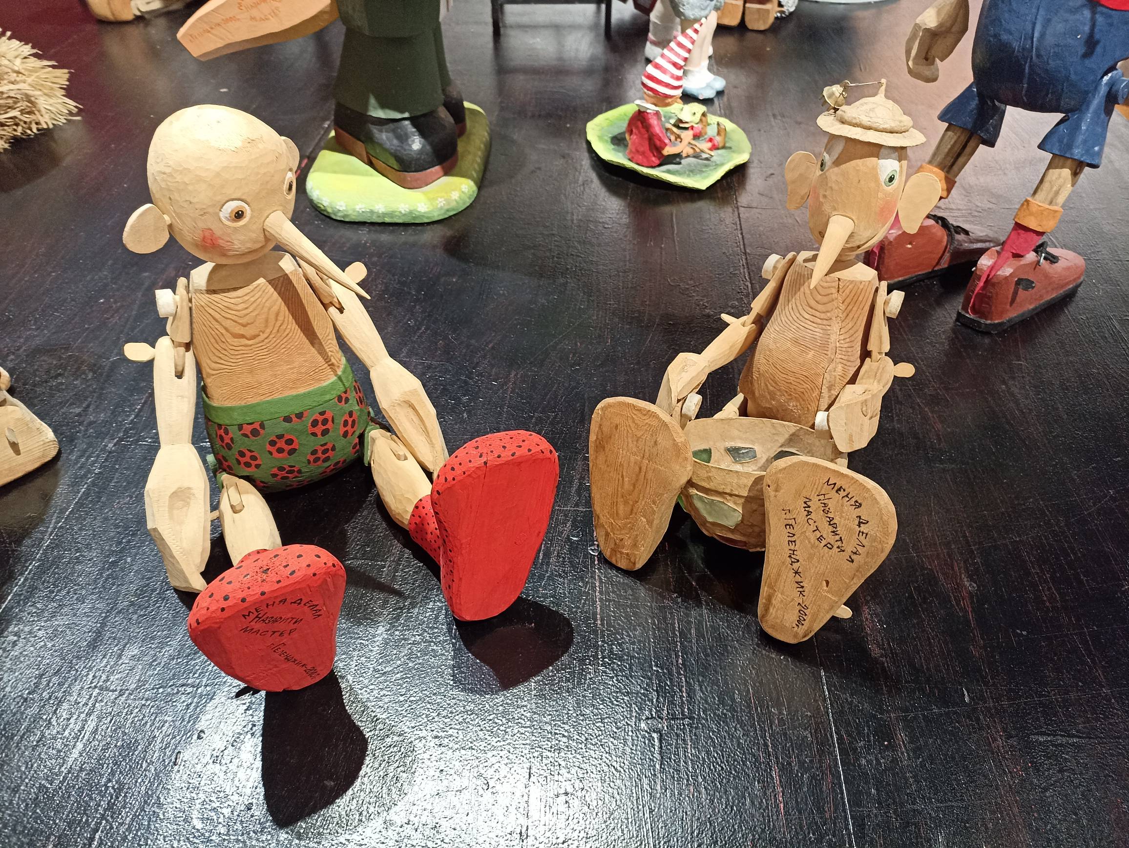 Здесь есть участницы благотворительного проекта «Кукла от звезды», одну из которых создала Галина Вишневская, и невероятно харáктерные и смешные буратино – творения мастера Виктора Назарити.