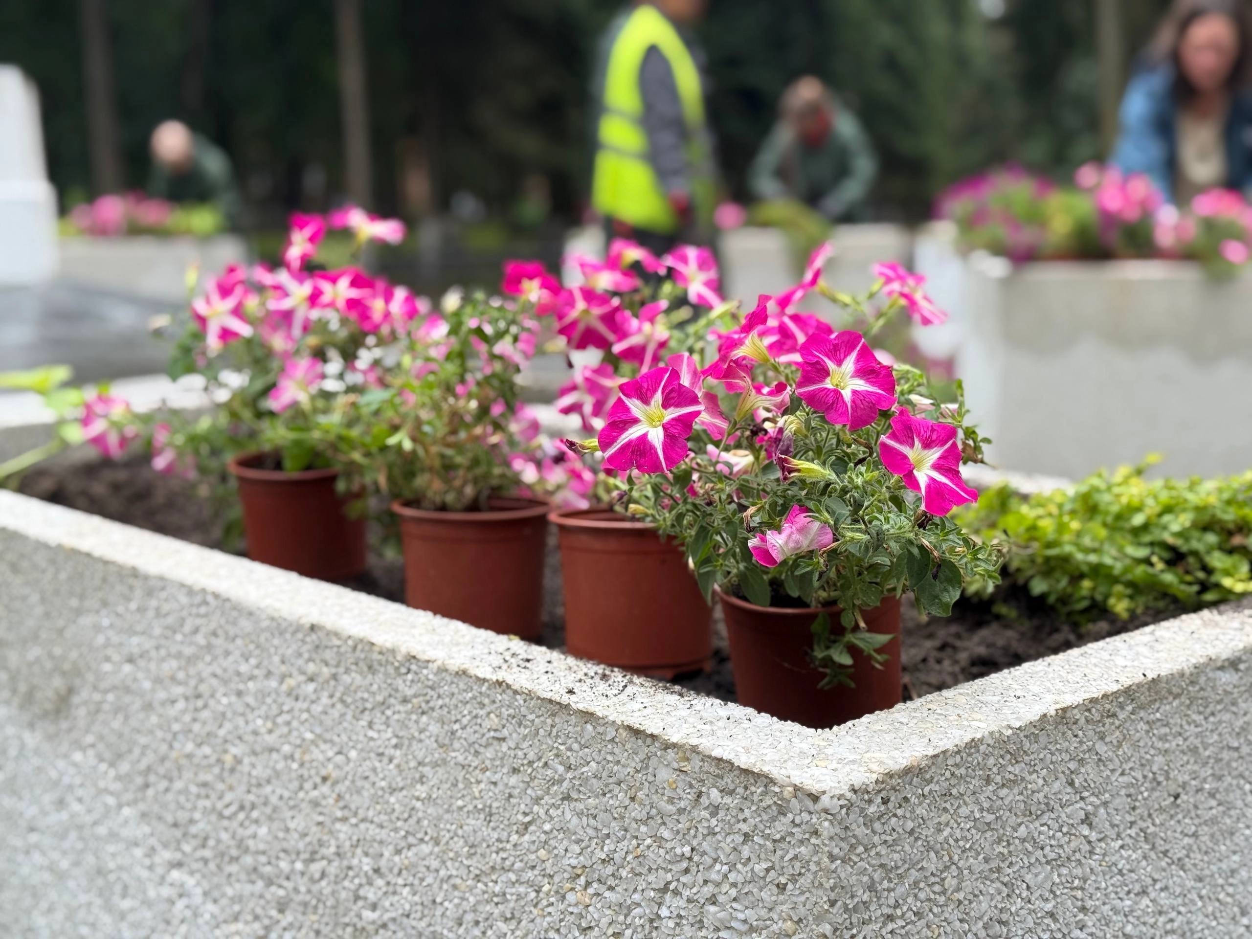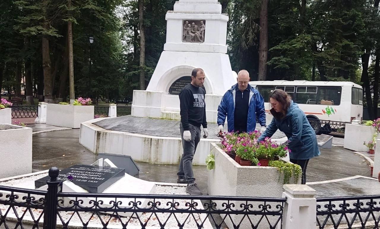 Представители Фонда – председатель правления Александр Окунев и директор Борис Толкачев – лично высадили цветы на клумбах у памятного места. Руководила процессом главный садовник Калуги Ольга Зорякова.