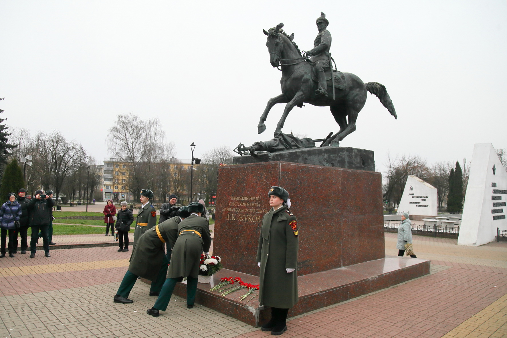 Цветы были возложены и к памятнику маршала в сквере Жукова.