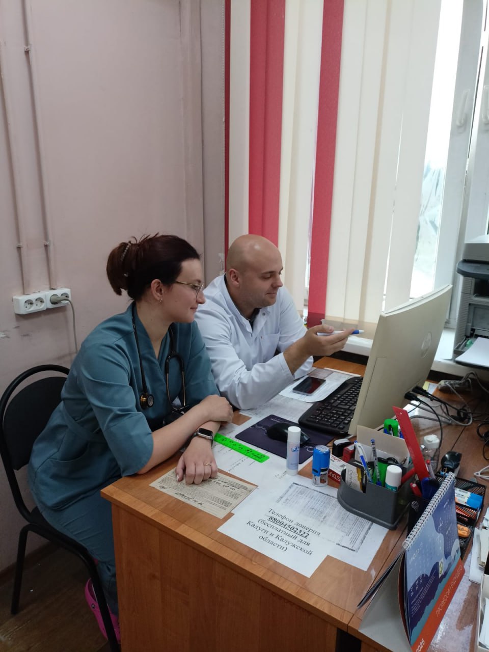 «Это одна из самых больших поликлиник Калуги, более 3 тыс. кв. м., 5 этажей. Здесь принимают врачи, работает дневной стационар, есть кабинеты ЛФК и физиокабинеты. Поликлиника не прерывала работы на время ремонта, продолжая прием пациентов на свободных площадях»,