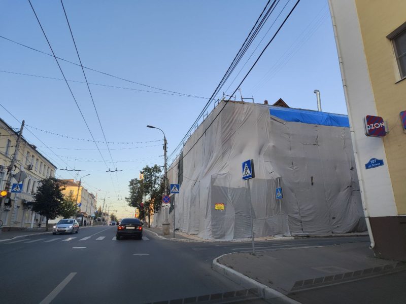 В доме № 99 на улице Ленина, являющемся объектом культурного наследия, начаты реставрационные работы.