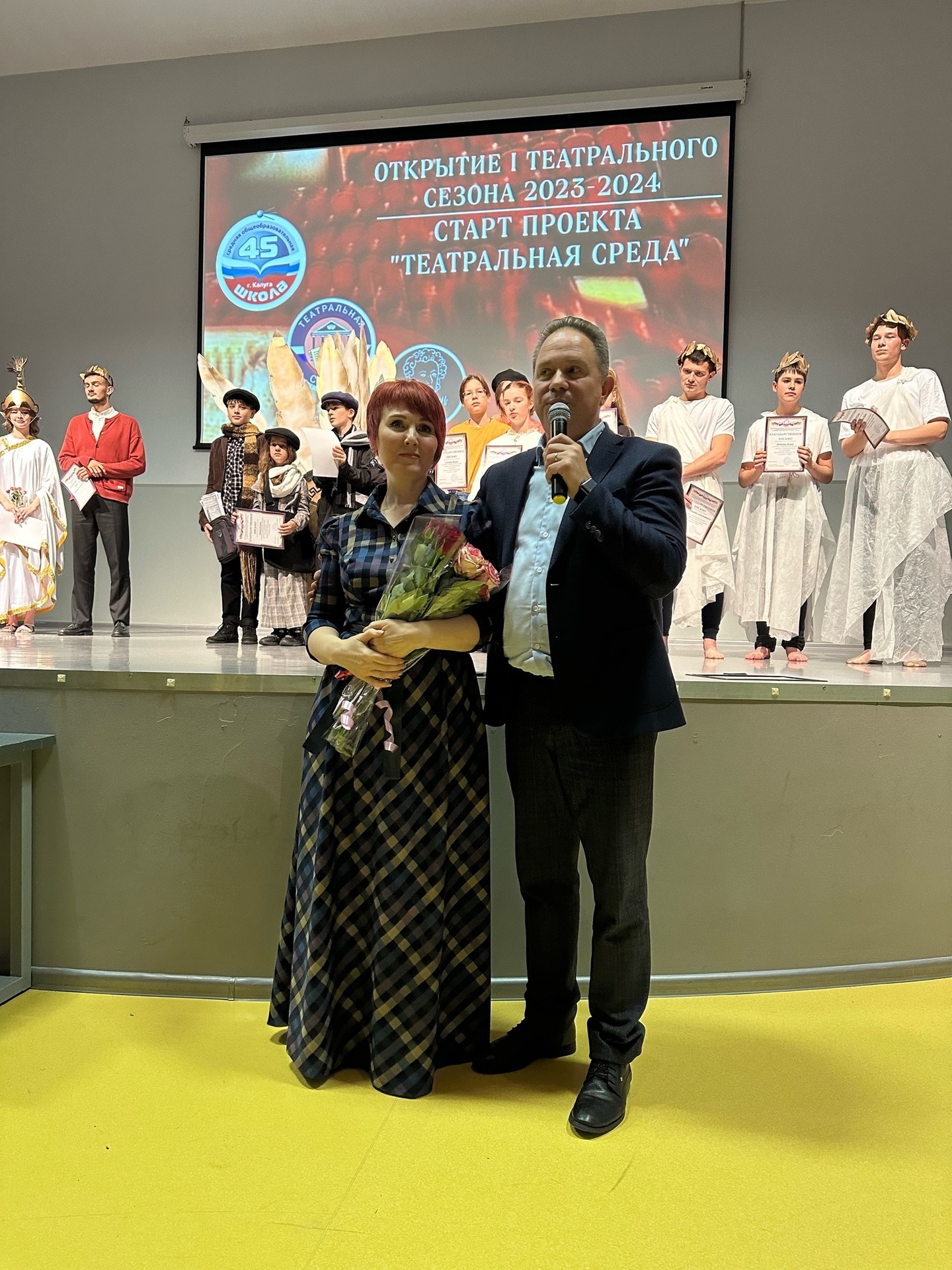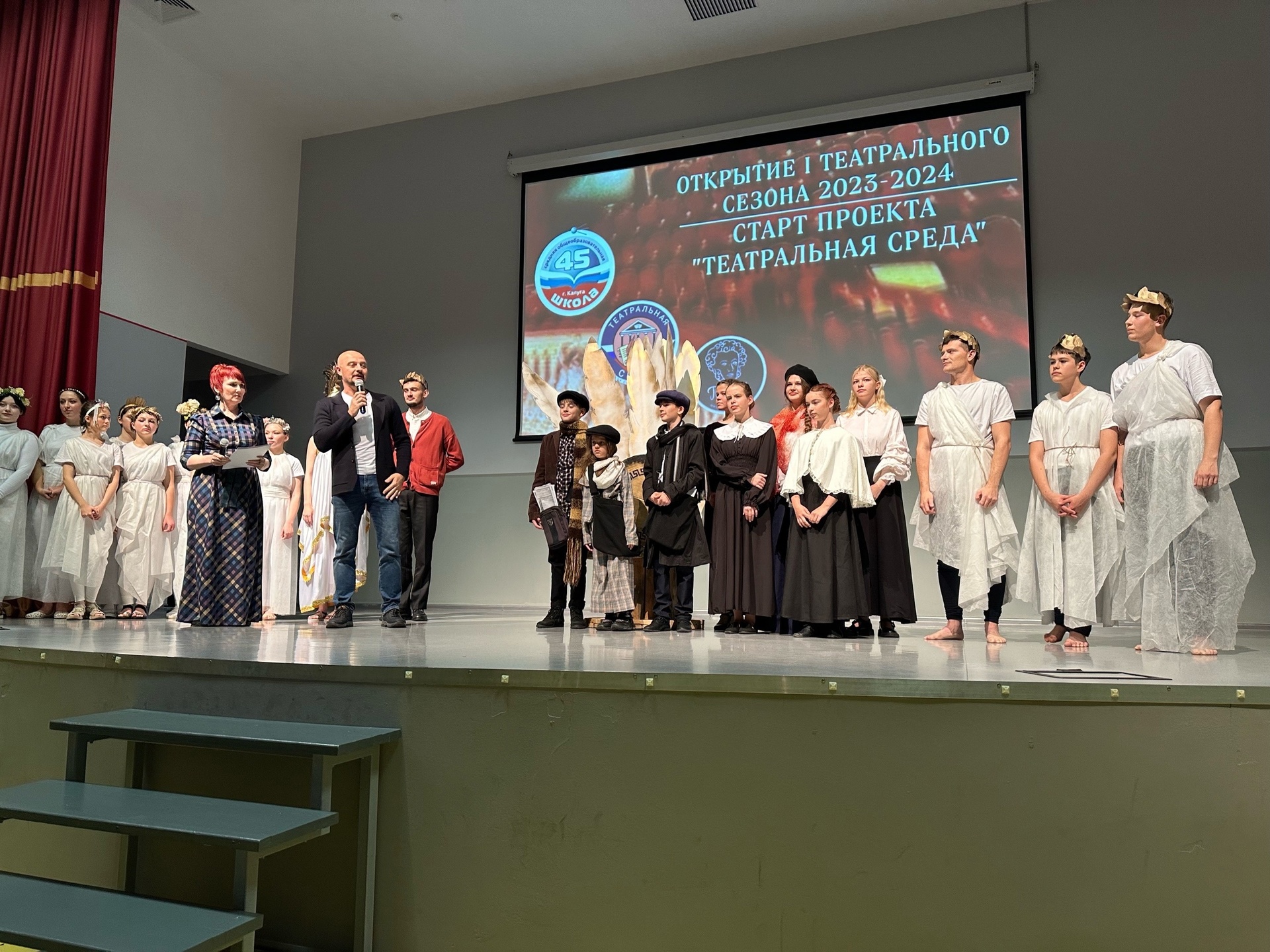 Вчера в кино-концертном зале «Жуков» МБОУ СОШ №45 г. Калуги состоялась презентация нового проекта «Театральная среда». Премьера спектакля «У истоков» собрала несколько сотен зрителей.