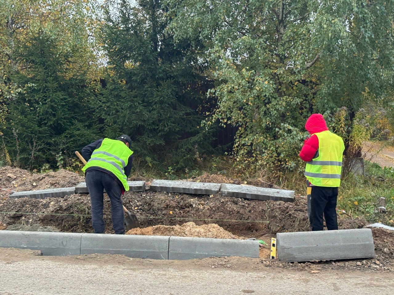 «Уже выполнены подготовительные работы: разбивка трассы, разработка грунта, устройство песчаной подстилки и щебёночного основания. Идёт установка бордюров. Подрядчик гарантирует выполнение работ в срок»,
