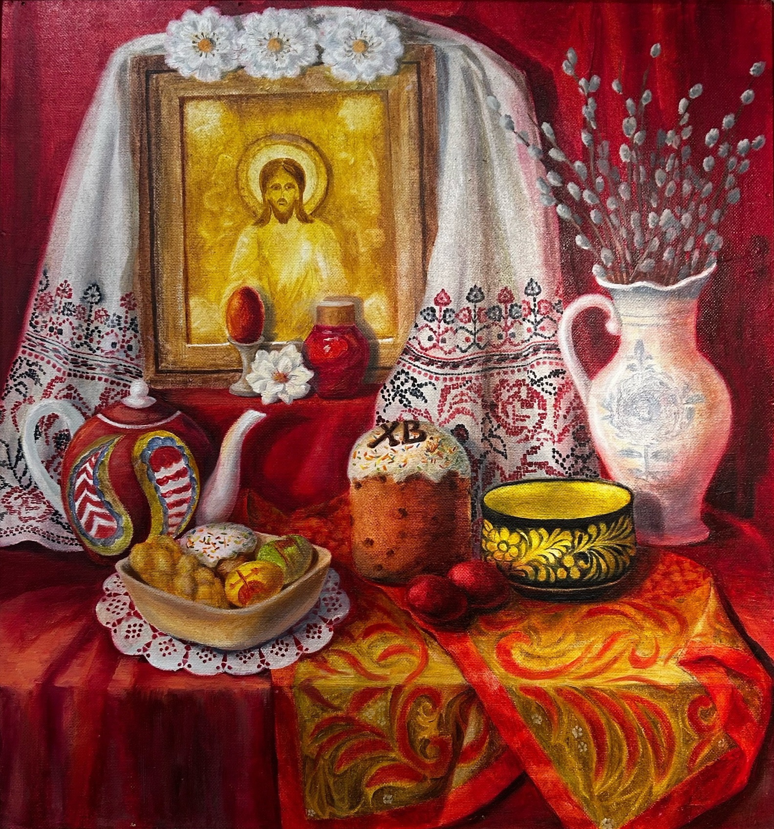 Расцвела весна яркими красками не только за окном, но и на стенах галереи Дома музыки. Зелёные сады, солнечные полянки с первоцветами, нарциссы в вазах, разноцветные яйца с золотыми куличами, пушистые веточки вербы, колокольни городских храмов, русские рушники и птицы – всё это трогательно изобразили живописцы на своих полотнах. Каждая картина – благовестие о воскресшем Спасителе, переданное языком искусства.
