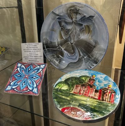 Выставка «Пасха в апреле» объединила не только живописцев, но и графиков и прикладников. Они по-своему отразили настроение праздничных дней. Преподаватели Калужского областного колледжа культуры представили изящные панно и тарелки с весенними мотивами, расписанные глазурями, а педиатр Анастасия Жигалова передала дух Пасхи через декоративные работы в технике декупажа и вышивки.