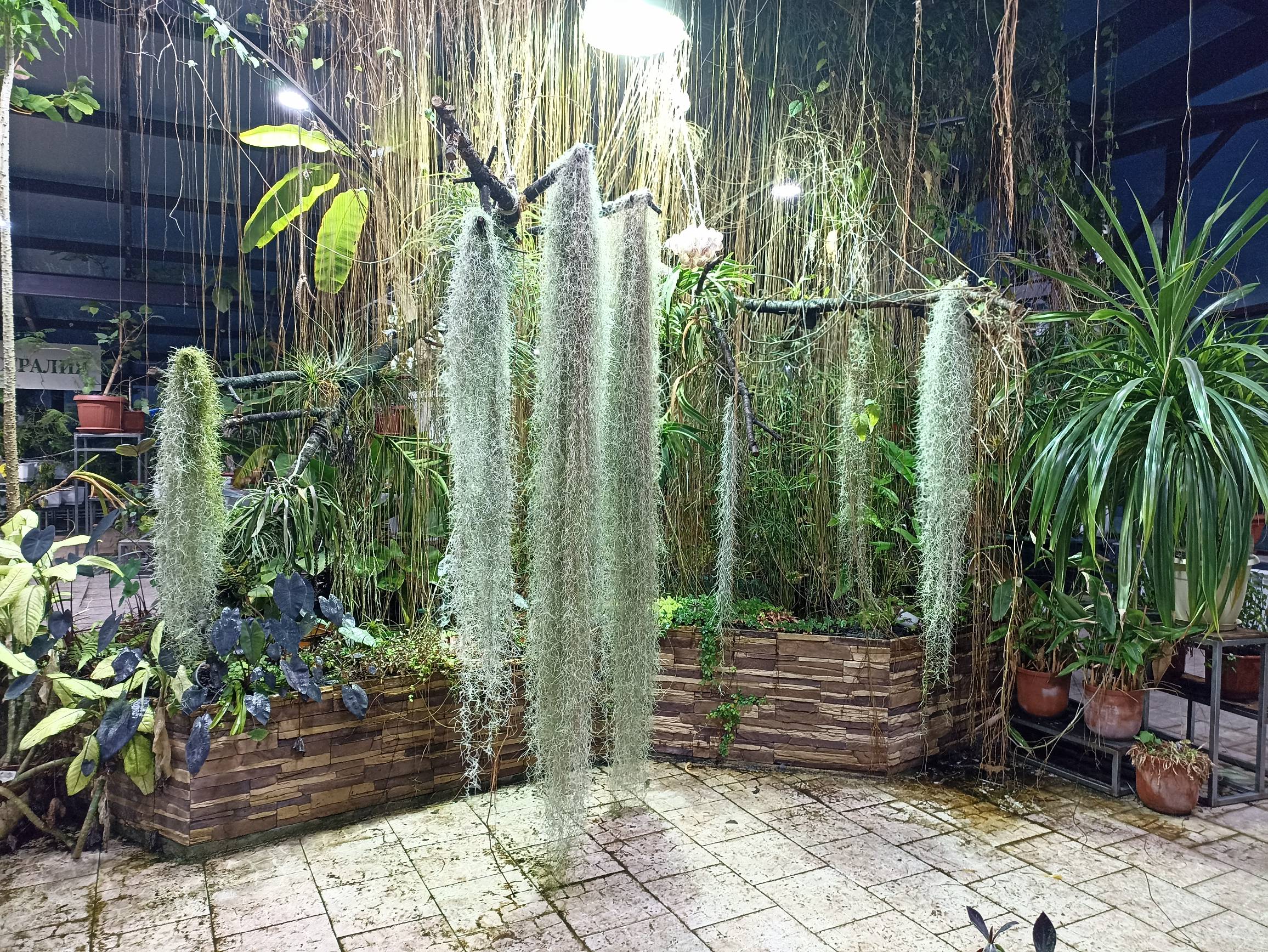 Настоящая достопримечательность сада – рукотворное дерево, на котором живут эпифиты. Дважды в год цветут орхидеи ванды родом из Юго-Восточной Азии – это значит, что условия для них созданы благоприятные. Яркий представитель южноамериканской флоры – тилландсия уснеевидная, похожая на длинную сизую бороду. Корней у этого растения нет, влагу впитывает всем телом, и каждые три часа для него автоматически включается «туман». Прямое солнце, воздух, влажность – тилландсия в ботаническом саду чувствует себя отлично и активно разрастается.