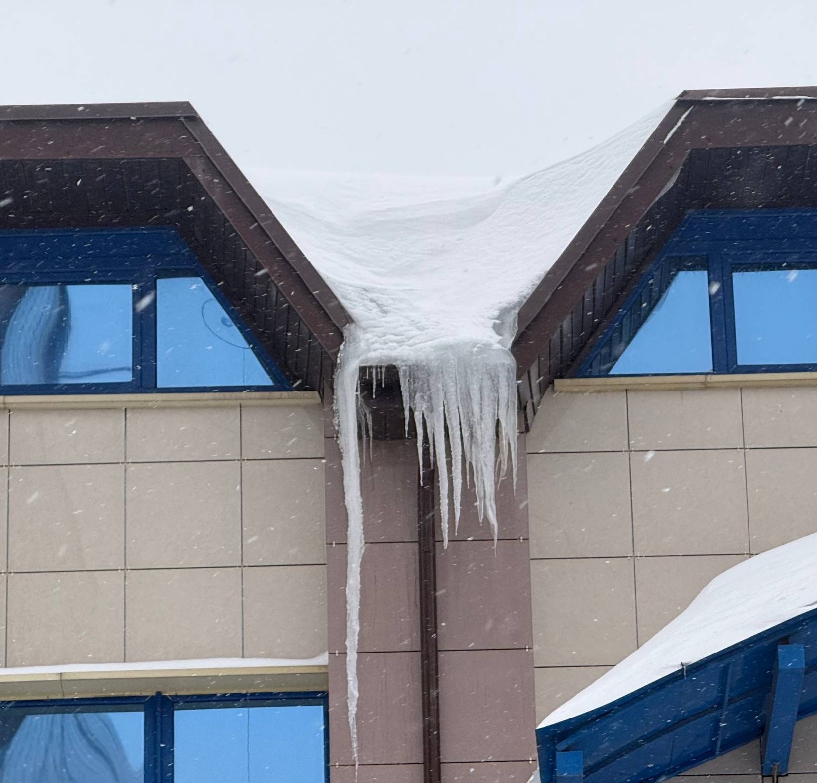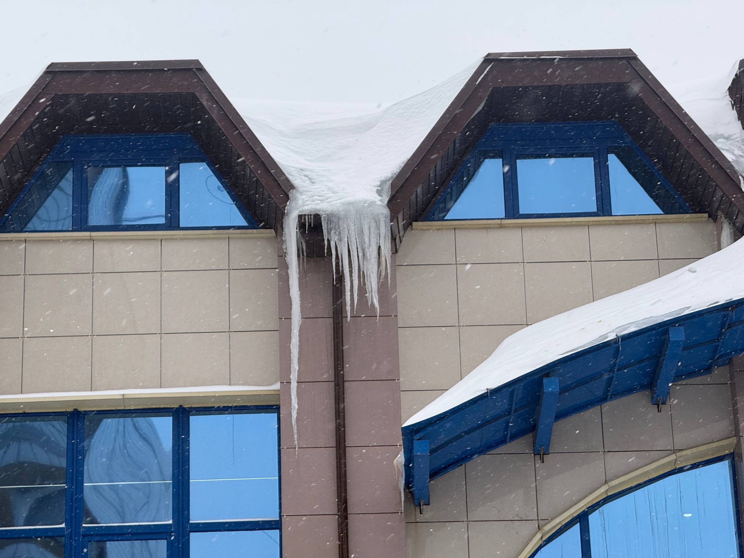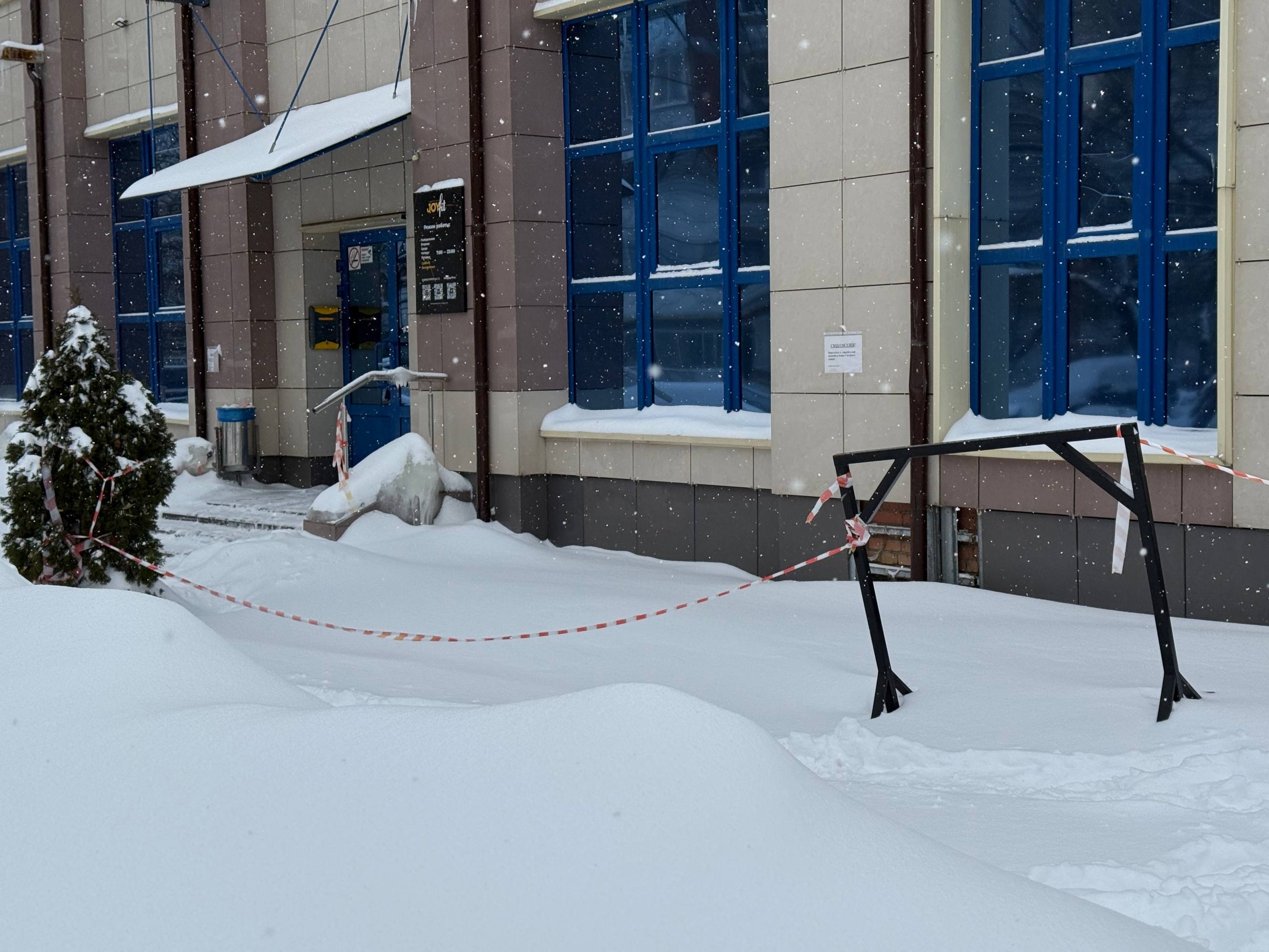 Возле JoyFit взгляд устремляется вверх: на крыше угрожающе нависают ледяные глыбы. Но есть и обнадеживающий знак – вокруг опасной зоны аккуратно протянута сигнальная лента. Михаил Ходин достает телефон и набирает номер директора. Разговор краток, но содержателен: специалист предупреждает о необходимости срочно убрать наледь. Директор, как выясняется, уже в курсе и обещает справиться до конца недели.