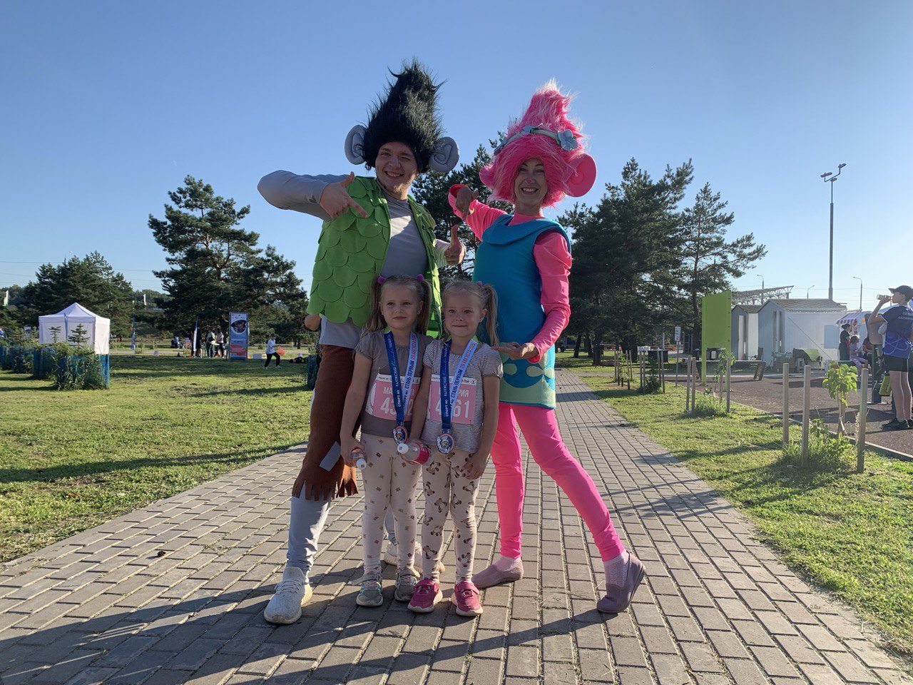 Каждого участника награждают памятными медалями. Скоро сегодня начнутся детские забеги на 1 км и 2 км.